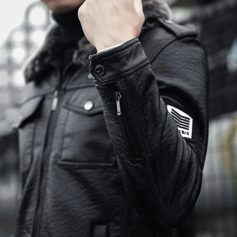 Утепленные мужские зимние куртки, кожаная куртка, модные мотоциклет...
