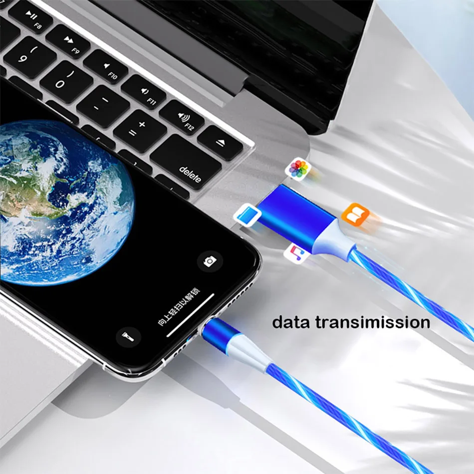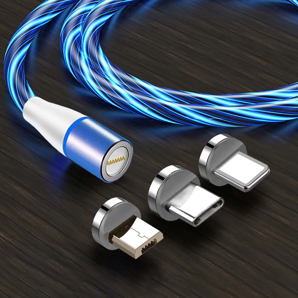 Магнитный кабель с подсветкой, светодиодный провод для быстрой зарядки, Micro USB Type-C, 3 А