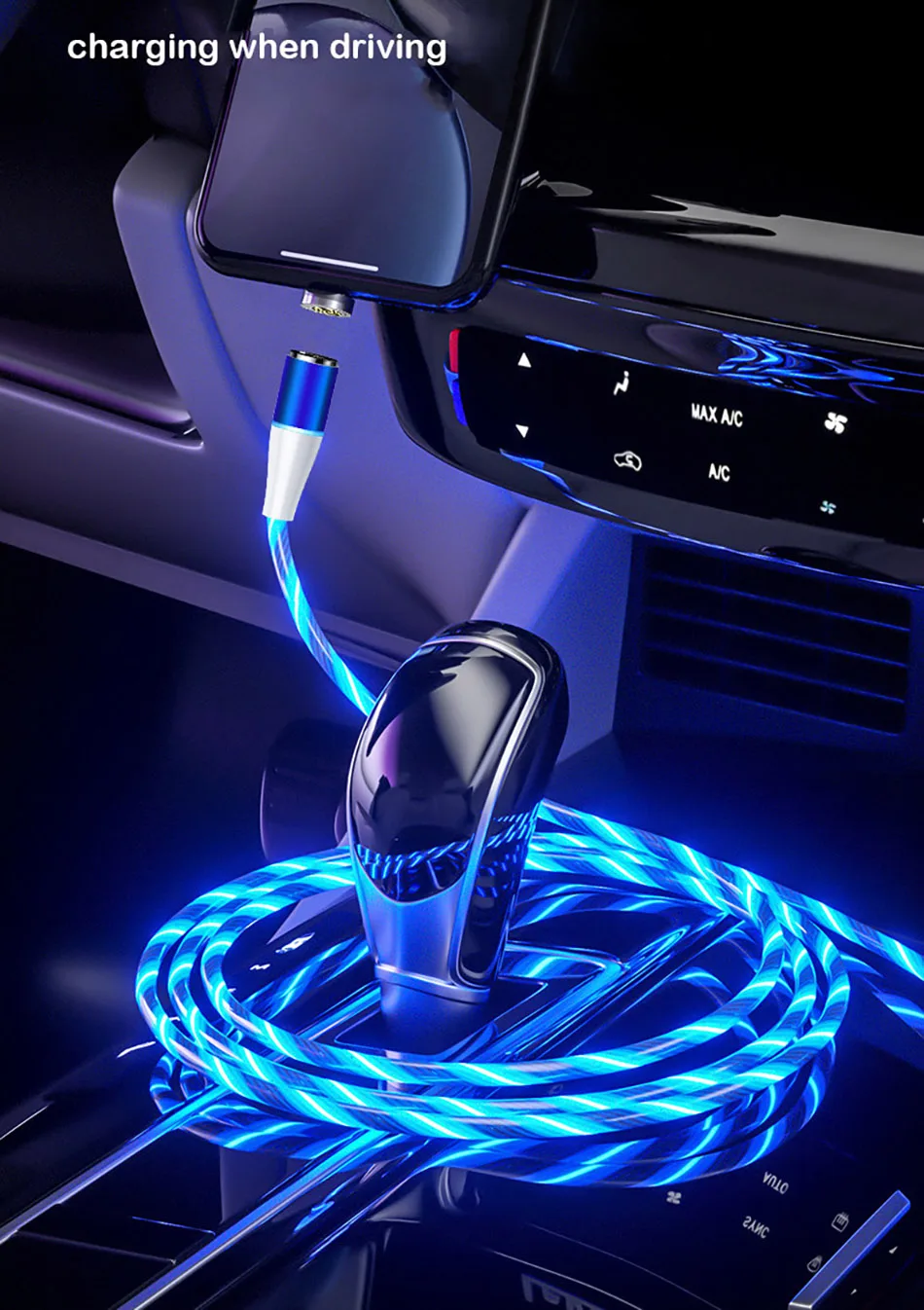 Светодиодный светящийся бегущий Магнитный зарядный кабель 3A светящ...