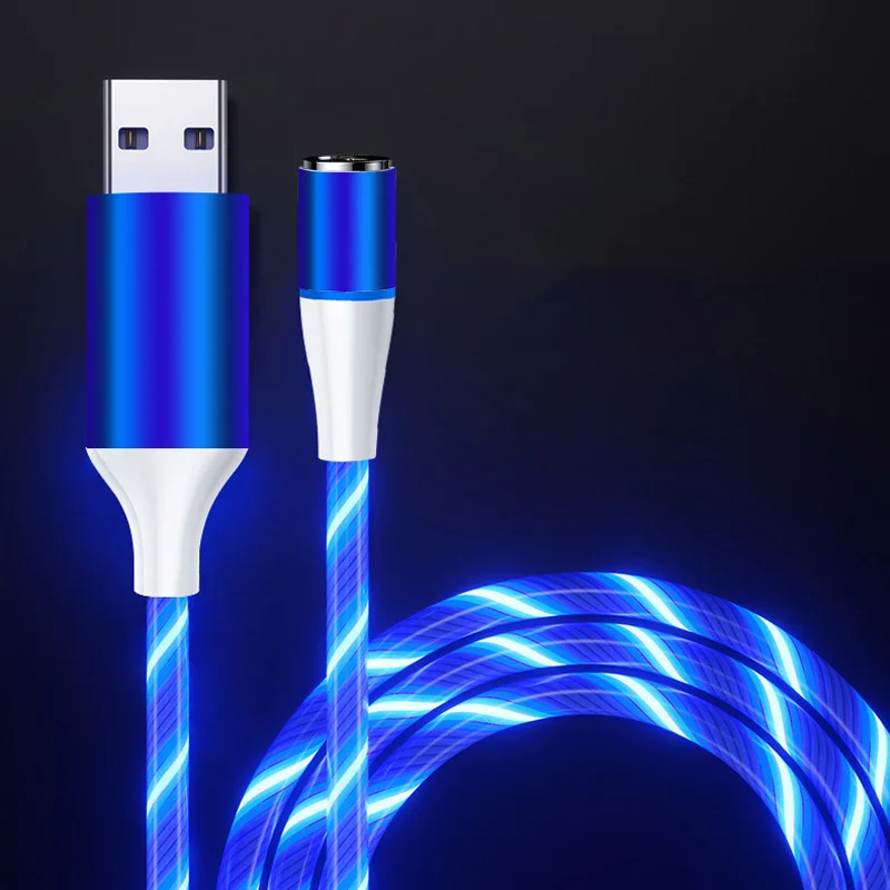 Магнитный кабель Micro USB Type-C 3A, светящийся светодиодный свети...