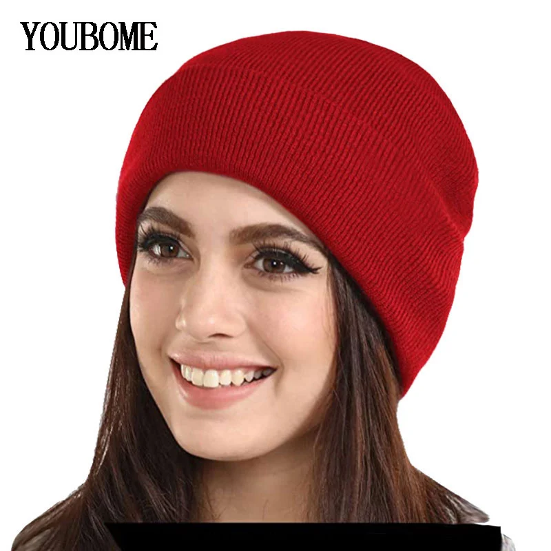 Зимняя вязаная женская зимняя шапка, женские облегающие шапки, Осенние шапочки, теплая шапочка с черепом, черная красная шапка