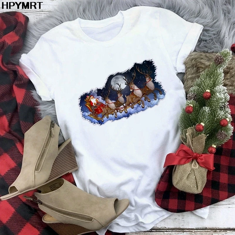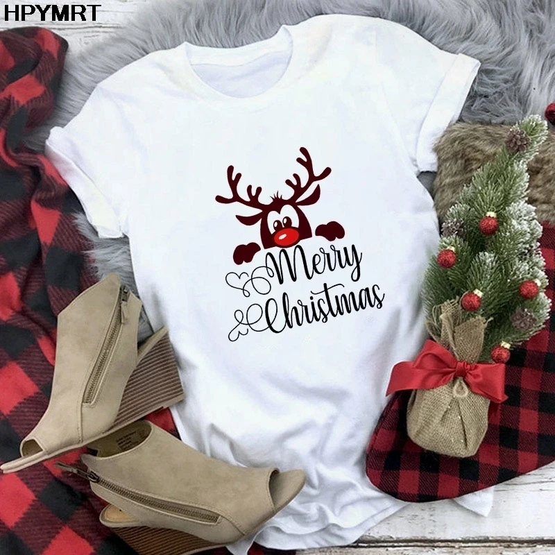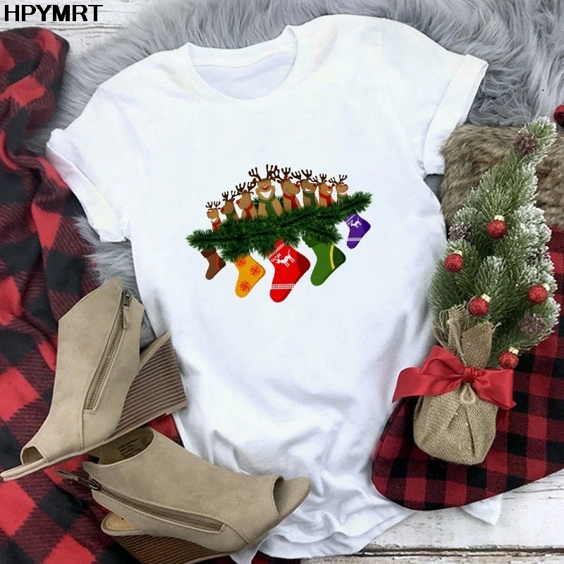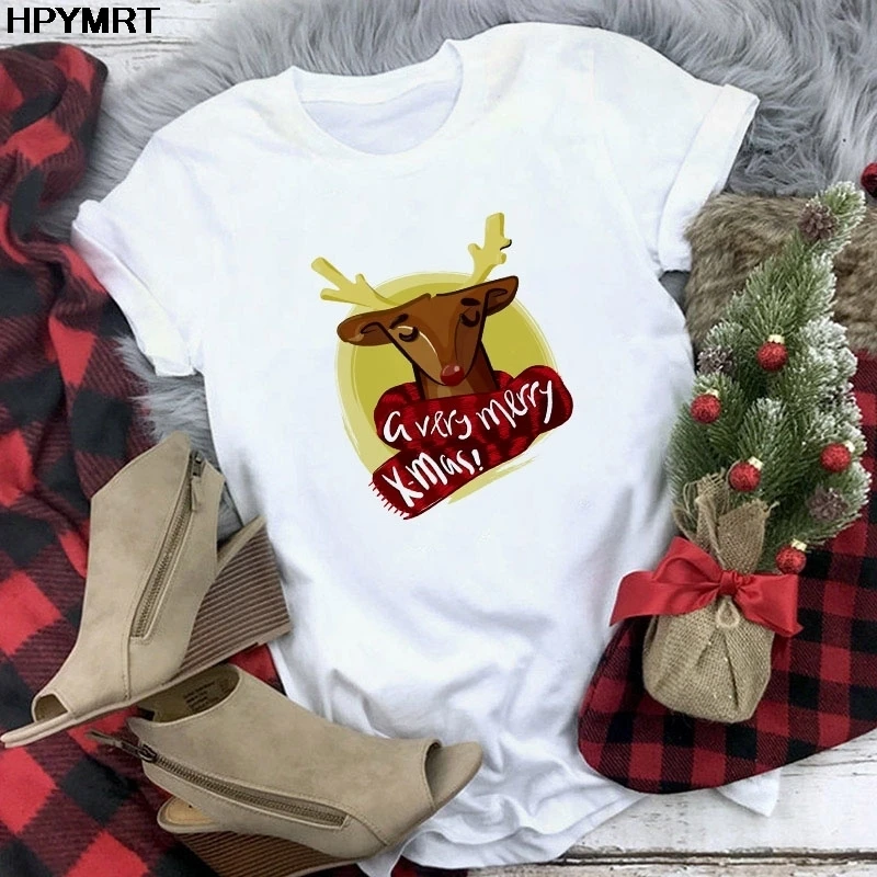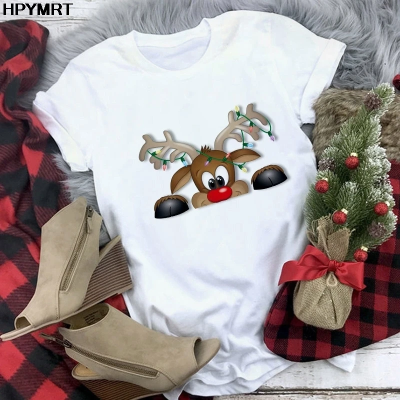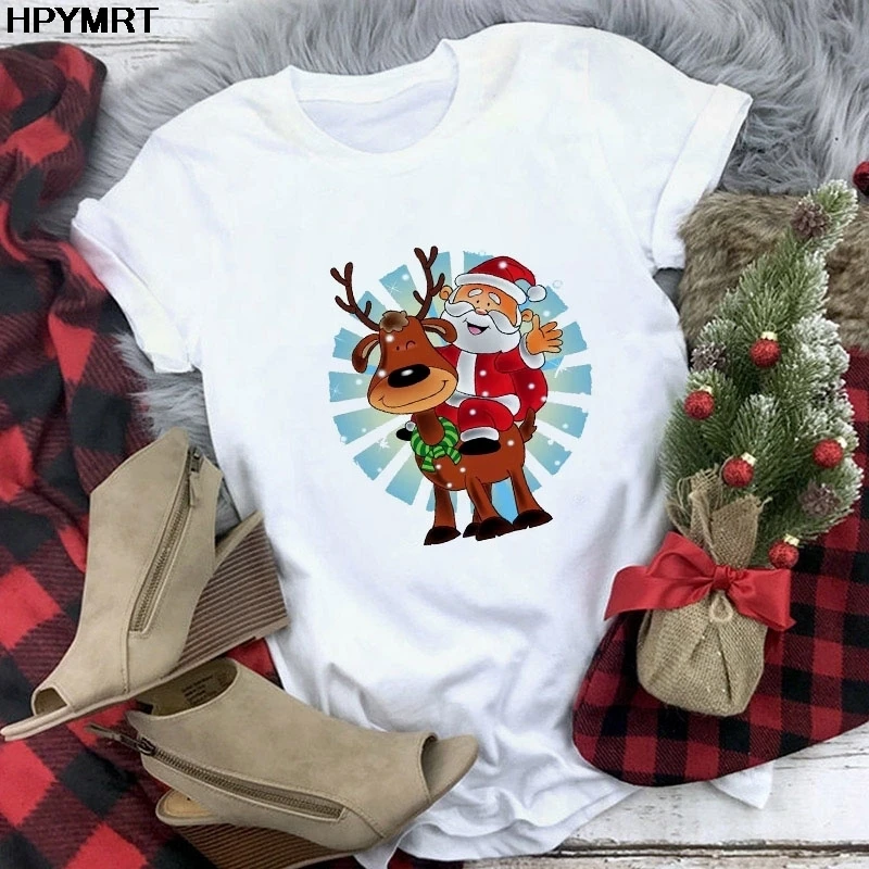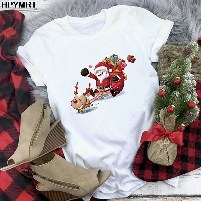 Футболка женская мода с Рождеством Христовым Harajuku с коротким ру...
