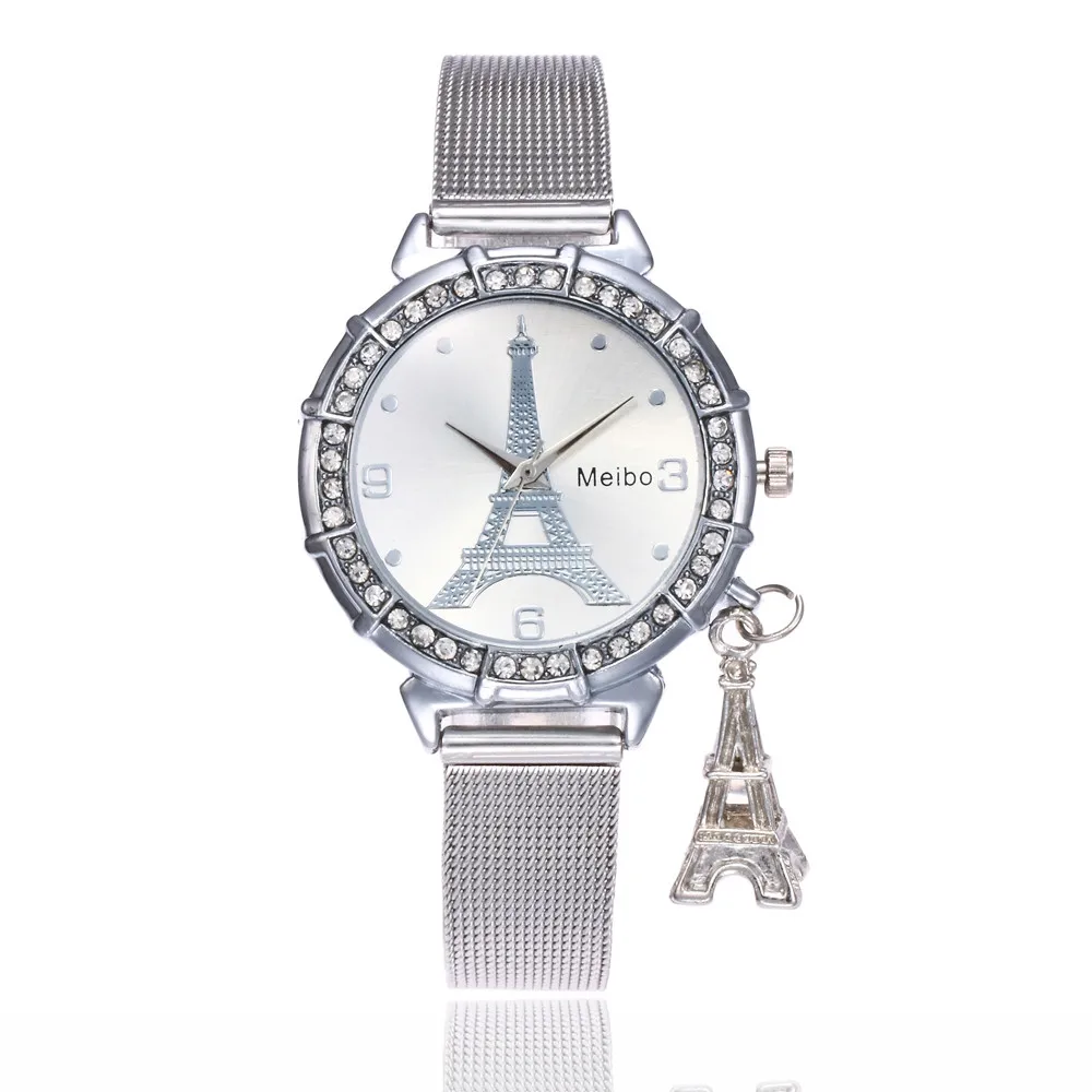 Модные женские кварцевые наручные часы MEIBO с Эйфелевой башней из нержавеющей стали