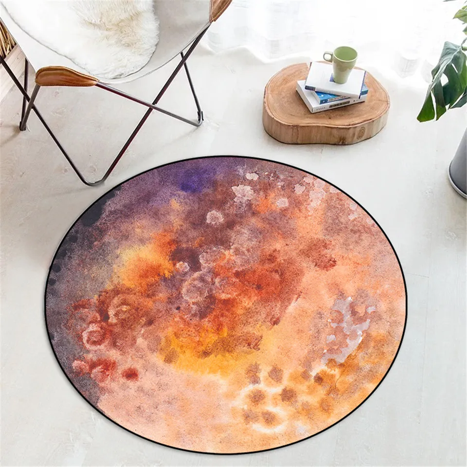Оранжевый круглый напольный коврик Planet Surface для детей, красочный ковер для девочки, журнальный столик, коврик для стула, нескользящий Декор для комнаты