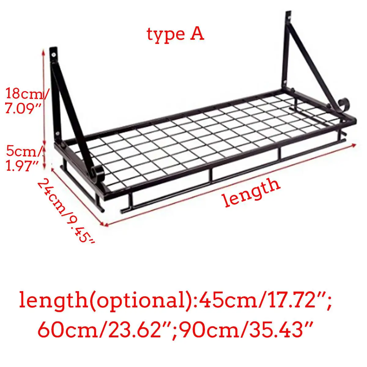Характеристики:Материал: железоЦвет: черныйСпособ установки: винты (в комплекте)Тип: 45 см Тип A; 60 см Тип A; 90 см Тип A; 60 см Тип BРазмер: как показано на фотографии[Преобразование: 1 мм = 0,03937 дюйма, 1 дюйм = 25,4 мм]