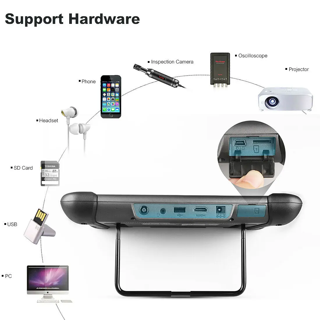 Цифровая Инспекционная камера MV108 предназначена для работы с продуктами MaxiSys 906BT или ПК. Он превращает ваш планшет MaxiSys MS906BT в область видеоосмотра, позволяя вам изучить труднодоступные области, которые обычно скрываются из поля зрения. Он способен записывать цифровые неподвижные изображения и видео, что предлагает Вам экономичное решение для проверки техники, объектов и инфраструктуры безопасным и быстрым способом.