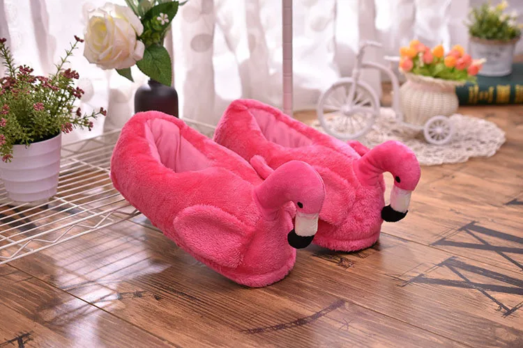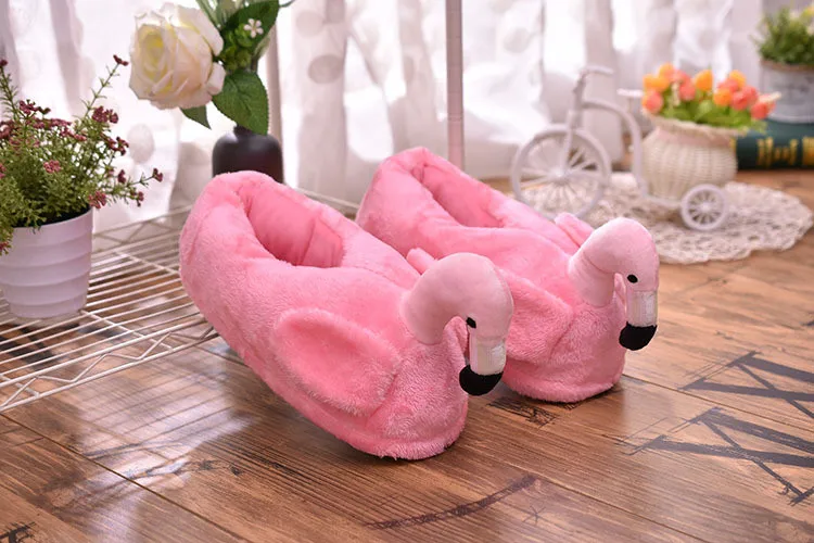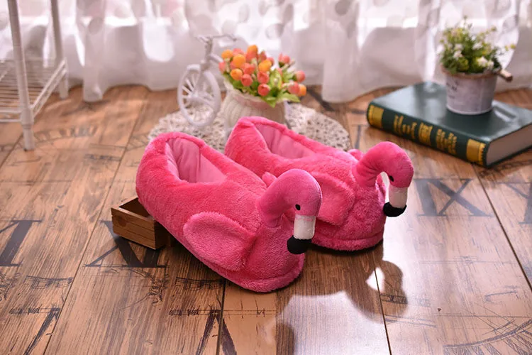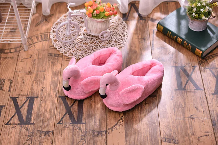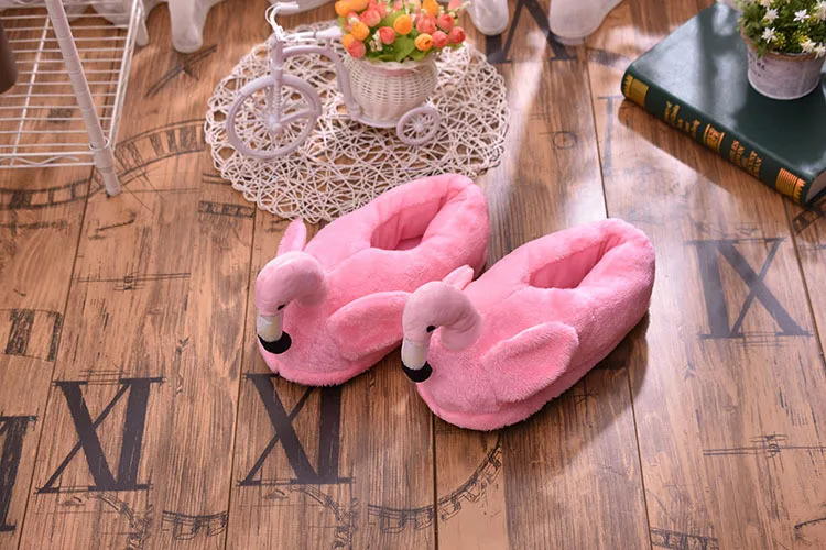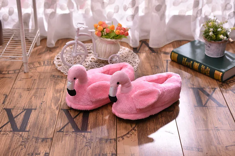 Зимние теплые хлопковые тапочки, сланцы с фламинго, плюшевые домашние хлопковые туфли для девочек, милая мультяшная обувь для дома, теплые кроссовки для пола
