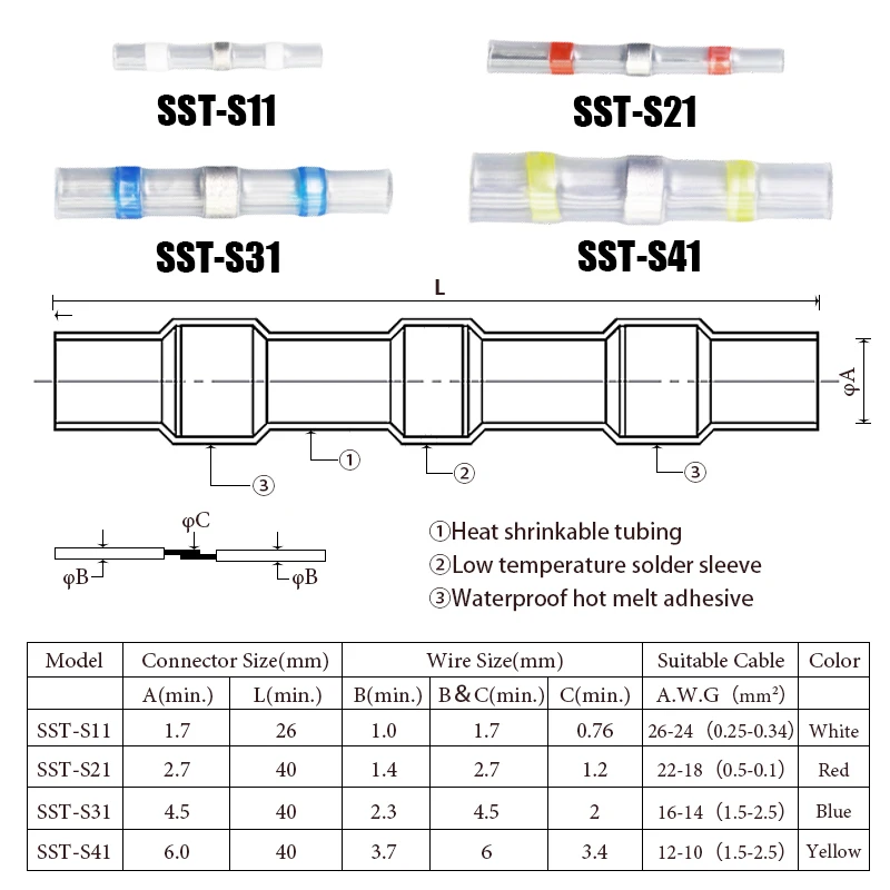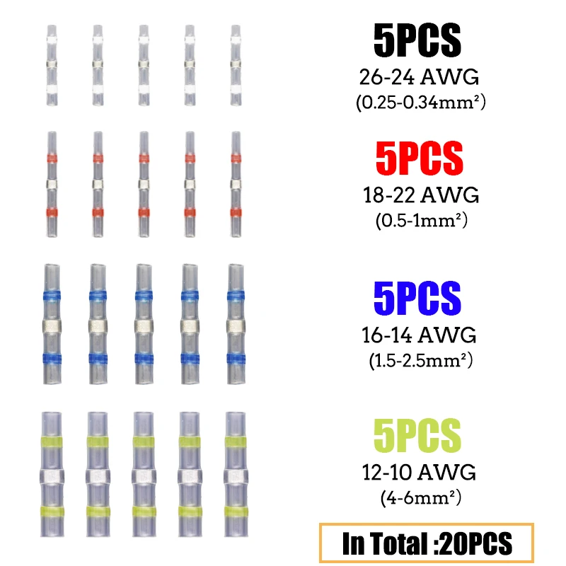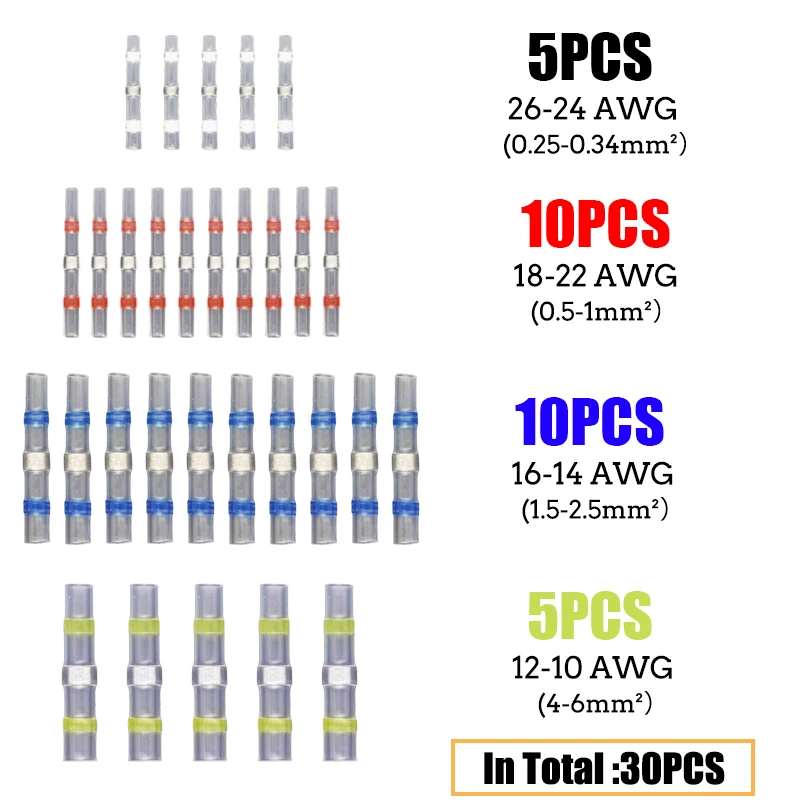 Термоусадочные стыковые соединители 103050 шт., водонепроницаемые клеммы для электрических проводов, изолированные стыковые соединения