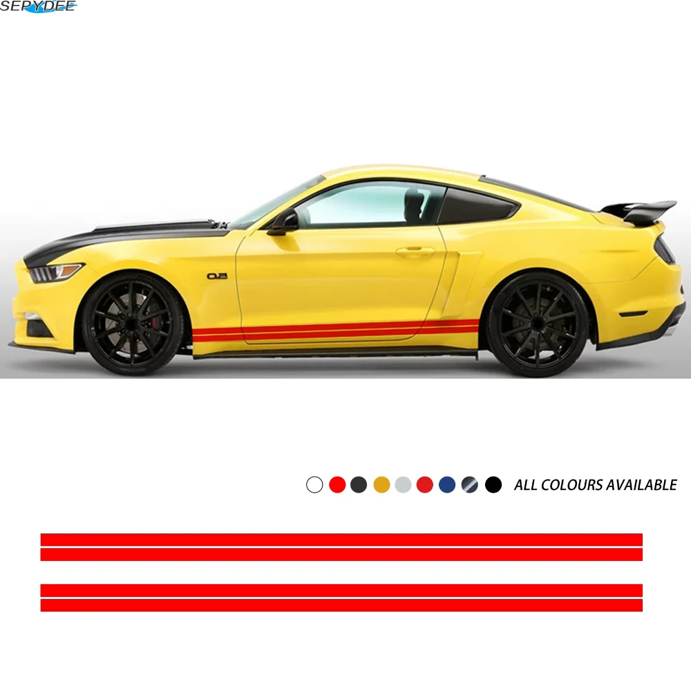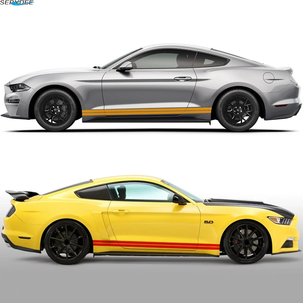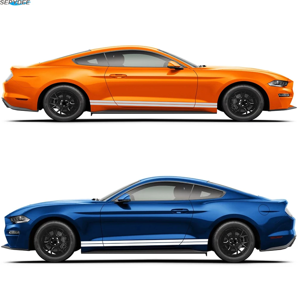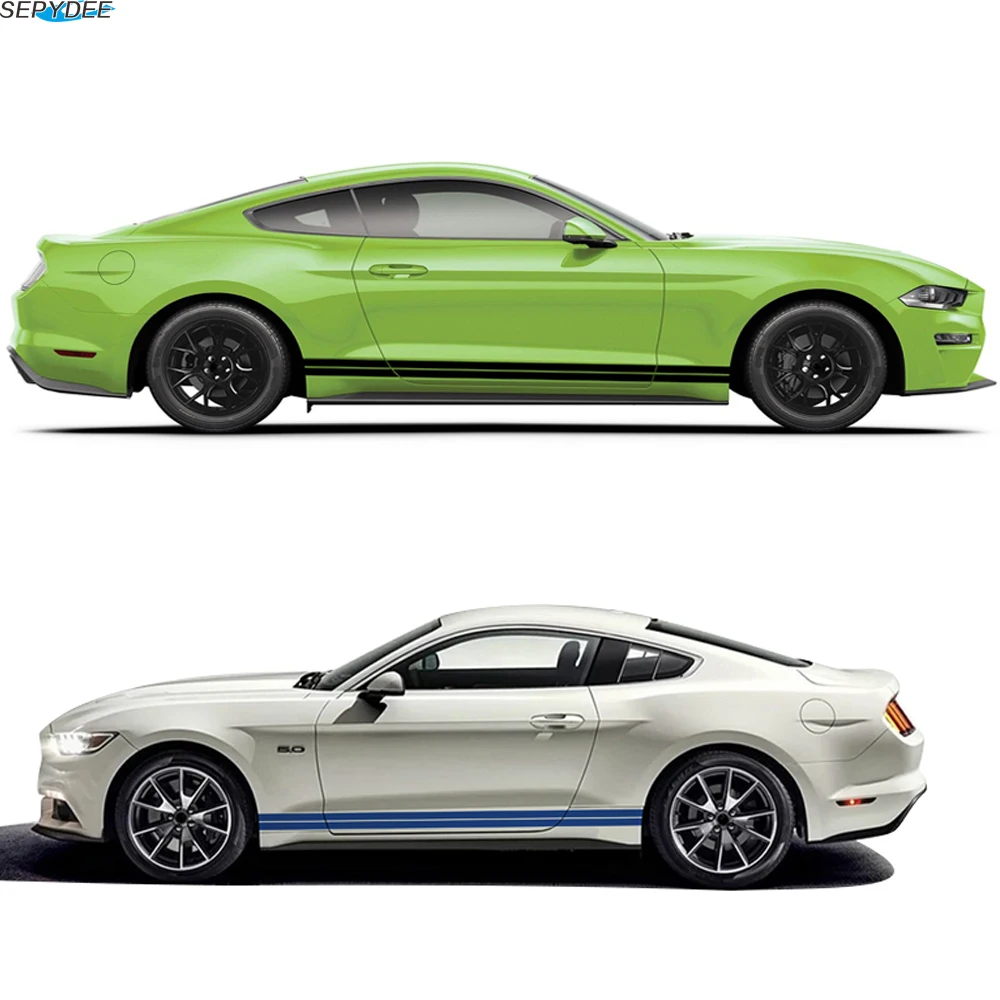 2 шт., наклейки на дверь автомобиля, боковую юбку, Длинные полосы, углеродное волокно, Виниловая наклейка для Ford Mustang, 2015-настоящее время, GT V8, автомобильные аксессуары