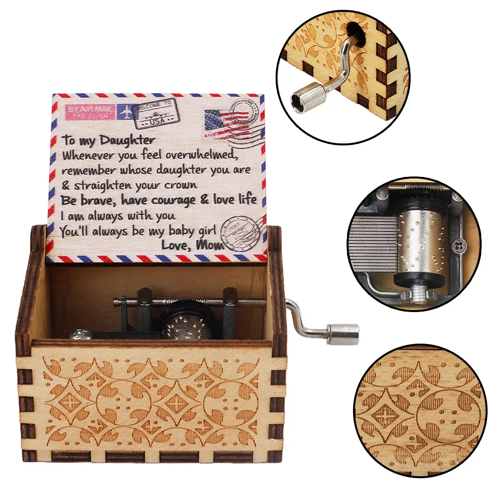 ????Винтажный дизайн-музыкальная шкатулка древесная. Изысканная поверхность, высеченная вручную в виде имитации древних времен, подарит вам Волшебный мир.????Вращайте рукоятку рукоятки-Поверните ручку, вы услышите четкую музыку без заряда батареи.????Классическая музыка-тема музыкальной шкатулки-«U are my sunshine». Музыкальная Шкатулка Внутри выгравировала слова, чтобы показать матери любовь к своим детям.????Легко носить с собой-портативный светильник можно разместить на ладони, небольшой сумке, столе для спальни и т. Д. Отличный орнамент.????Идеальный подарок-сделано как хорошее качество, который очень идеально подходит в качестве подарка дочери сына дети жена муж семья на день рождения, праздник, юбилей, пасху, Рождество, День благодарения, День святого Валентина