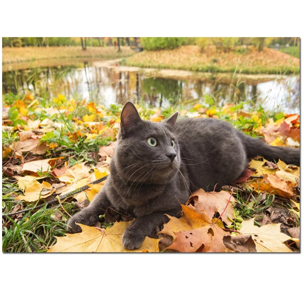 Алмазная 5d картина сделай сам с изображением русского синего кота, Алмазная мозаика, вышивка крестиком, алмазная вышивка, полная круглая картина, животное с пейзажем, E1140