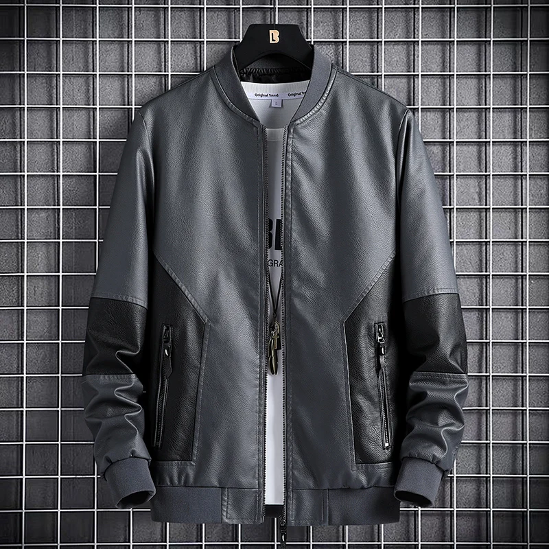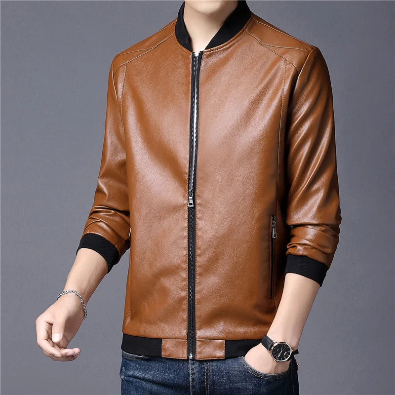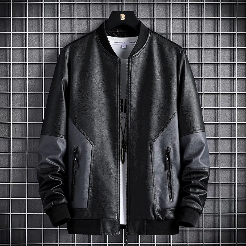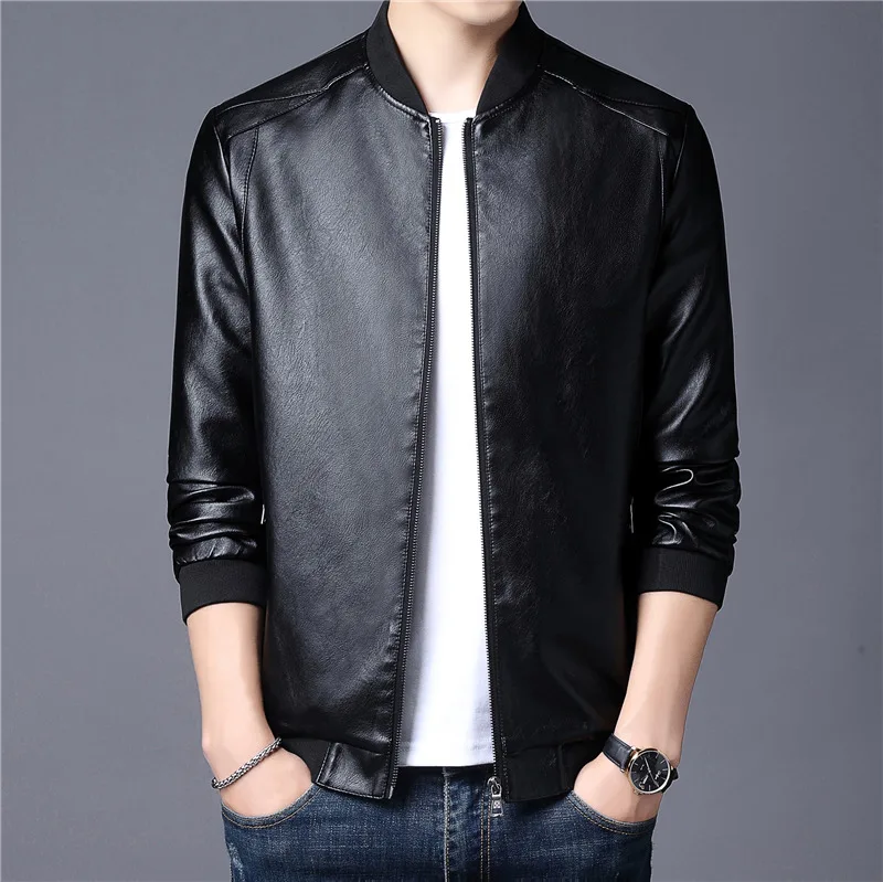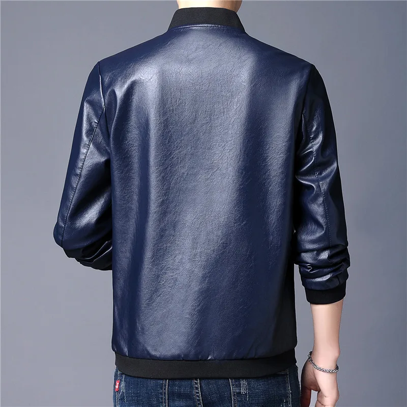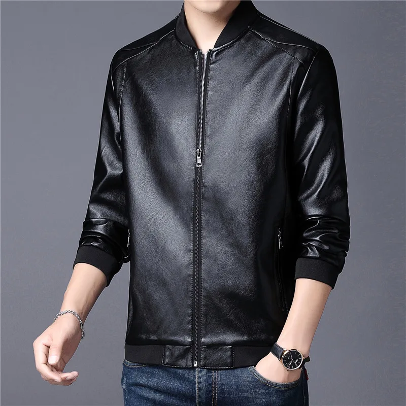Мужская кожаная куртка, приталенная мотоциклетная куртка, модная трендовая мотоциклетная куртка на молнии, Повседневная Уличная ветровка