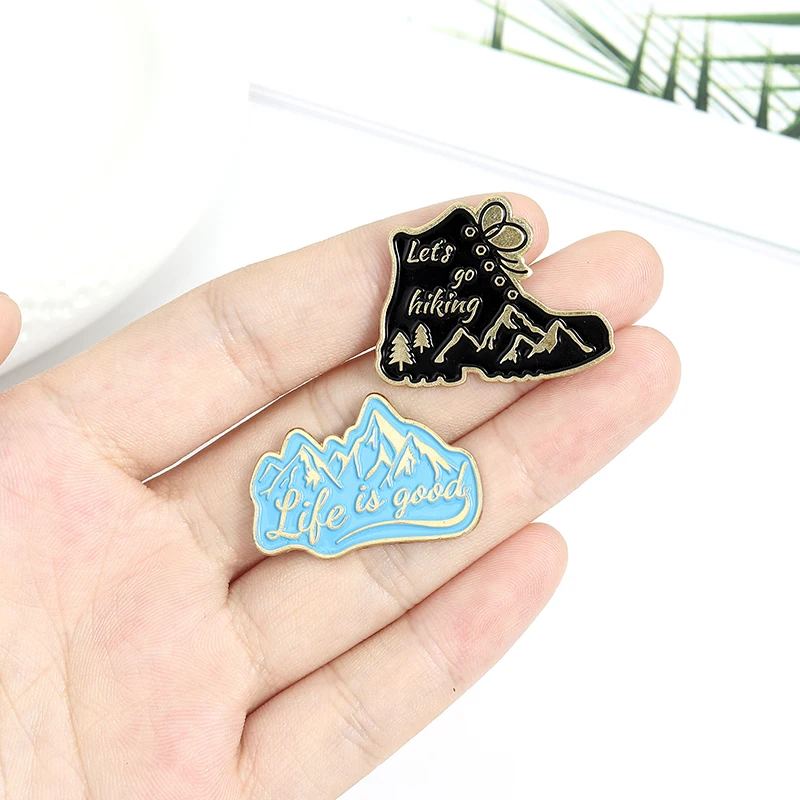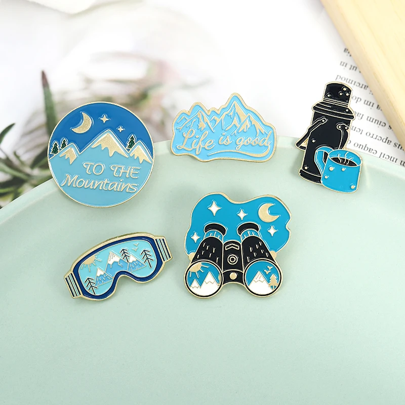 Эмалированные булавки на открытом воздухе Приключения дикий туризм путешествия Броши растения летучая мышь дикие животные камера телескоп ботинки очки Приключения значки