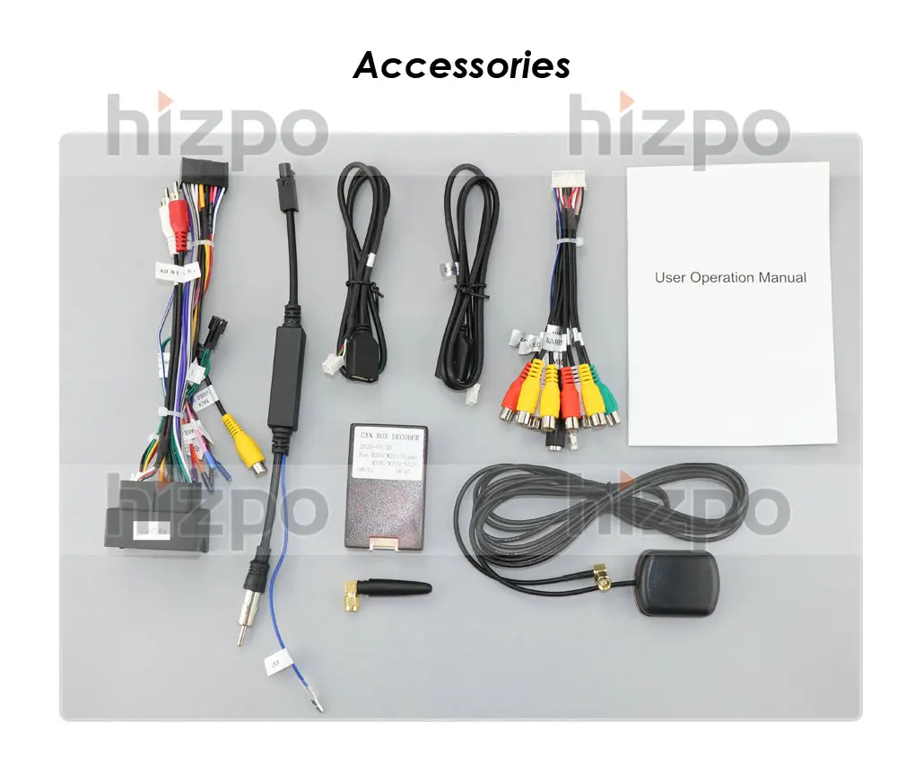 Стерео поставляется с аксессуарами, как показано на изображении аксессуаров, если вам нужен другой провод или аксессуары для установки, вам нужно купить отдельно.