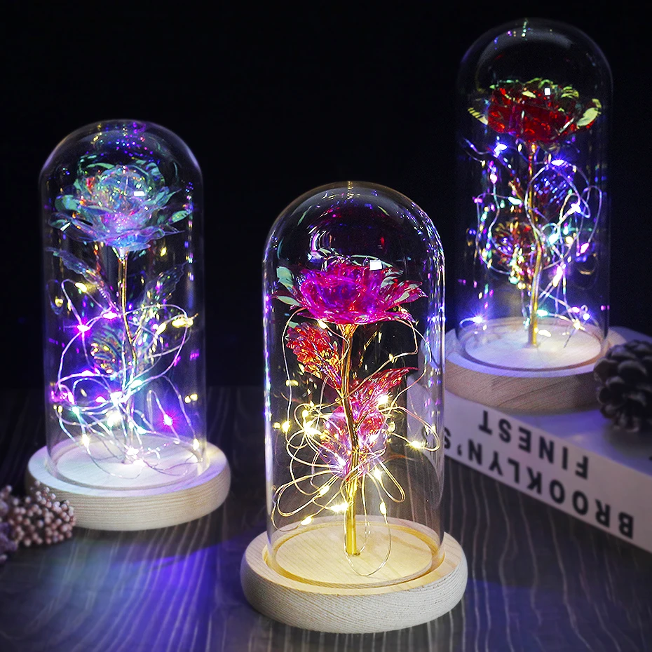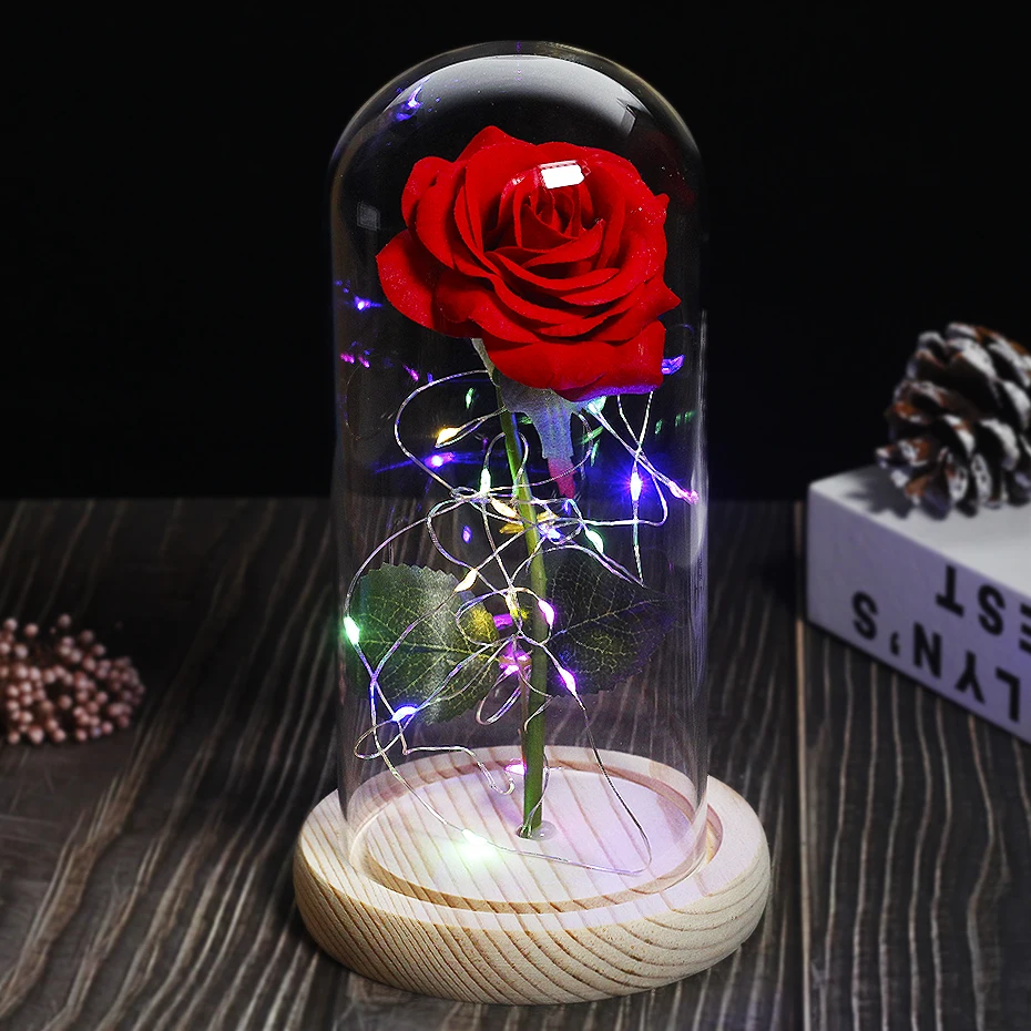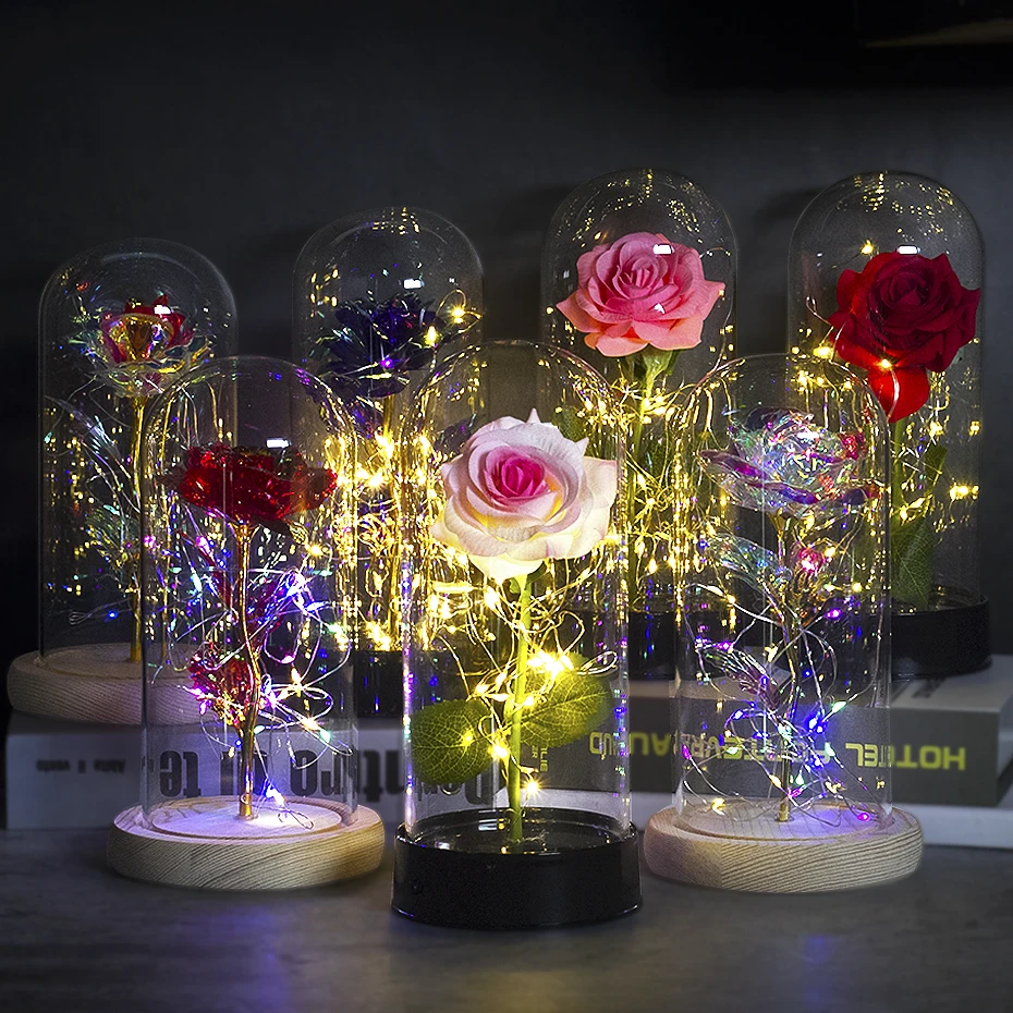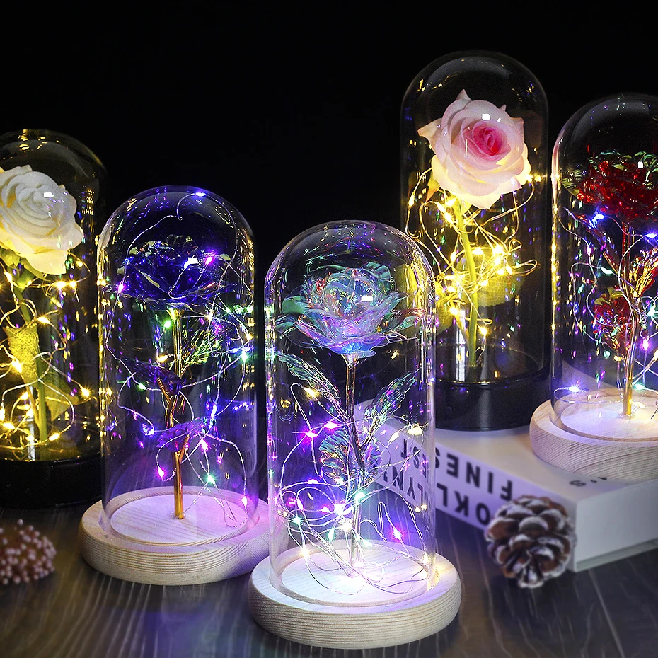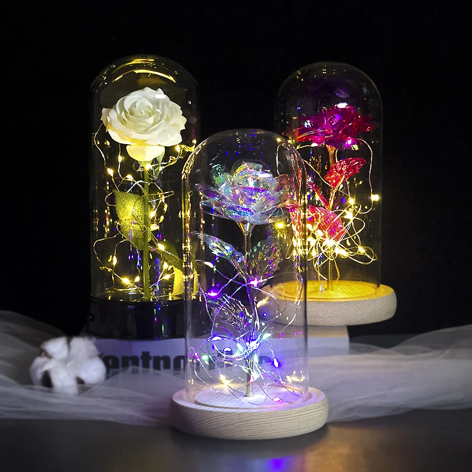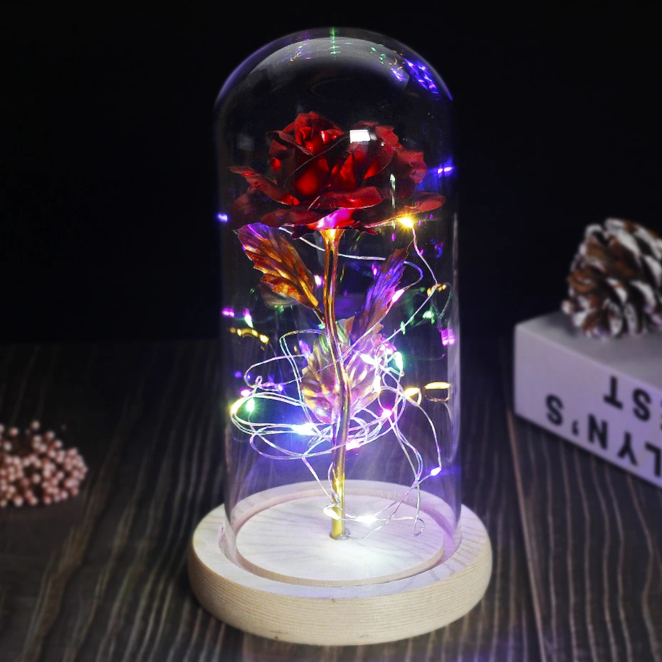 Красота и чудовище набор с розами искусственные красочные золотые розы цветок подарки на день Святого Валентина День благодарения день рождения девочки