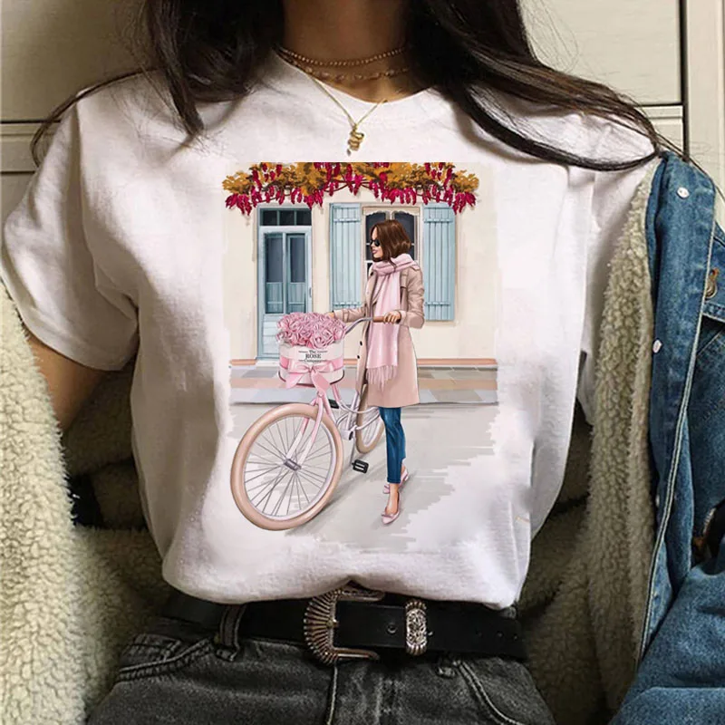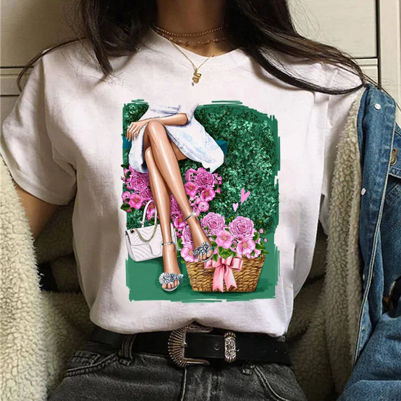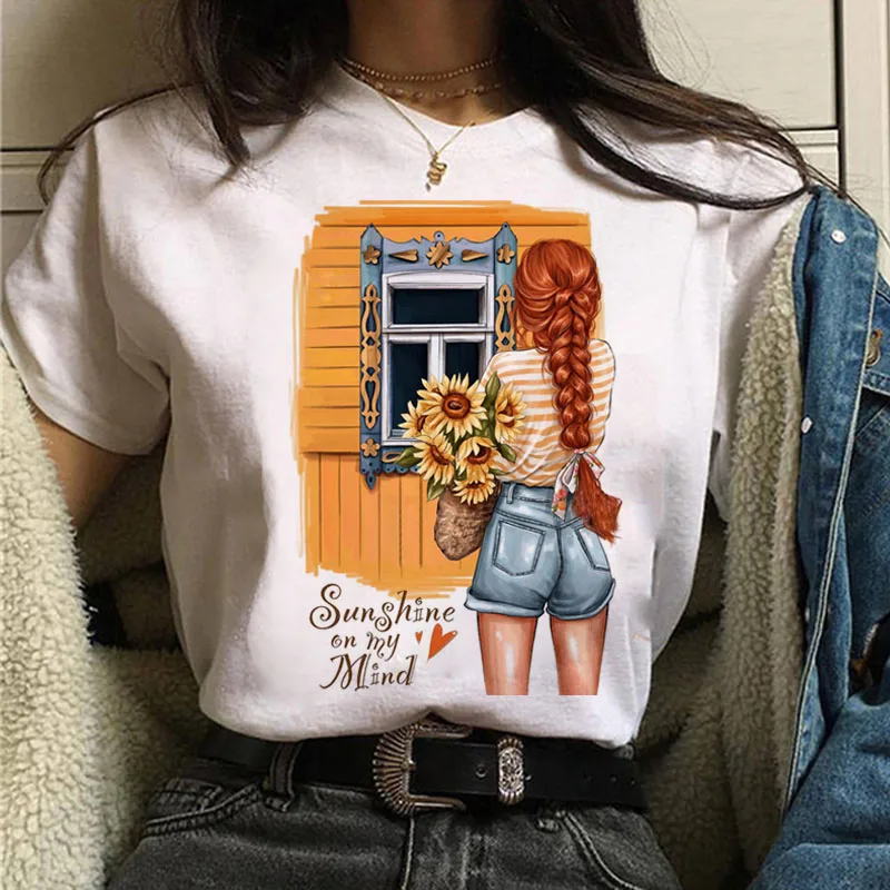 Футболка женская с цветочным принтом, модный топ с коротким рукавом и круглым вырезом, с графическим принтом, на лето