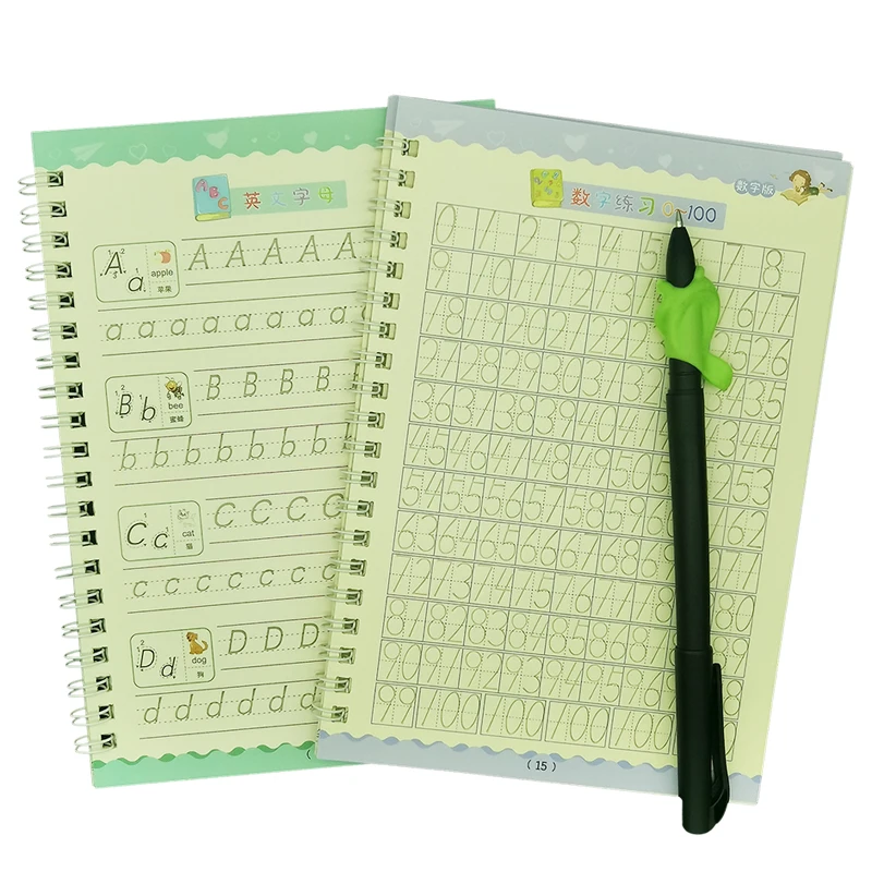 2 книги, Обучающие цифры на английском языке, Волшебная тетрадь для практики, Детская тетрадь для каллиграфии, письма, Детская английская надпись, игрушка