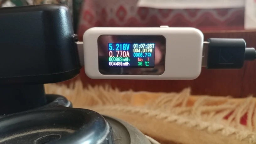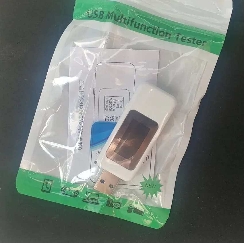 Доставка 19 дней.Очень крутая вещь.Показывает вольтаж,силу тока,сопротивление,мощность,температуру.5+++++++++++++++++++++