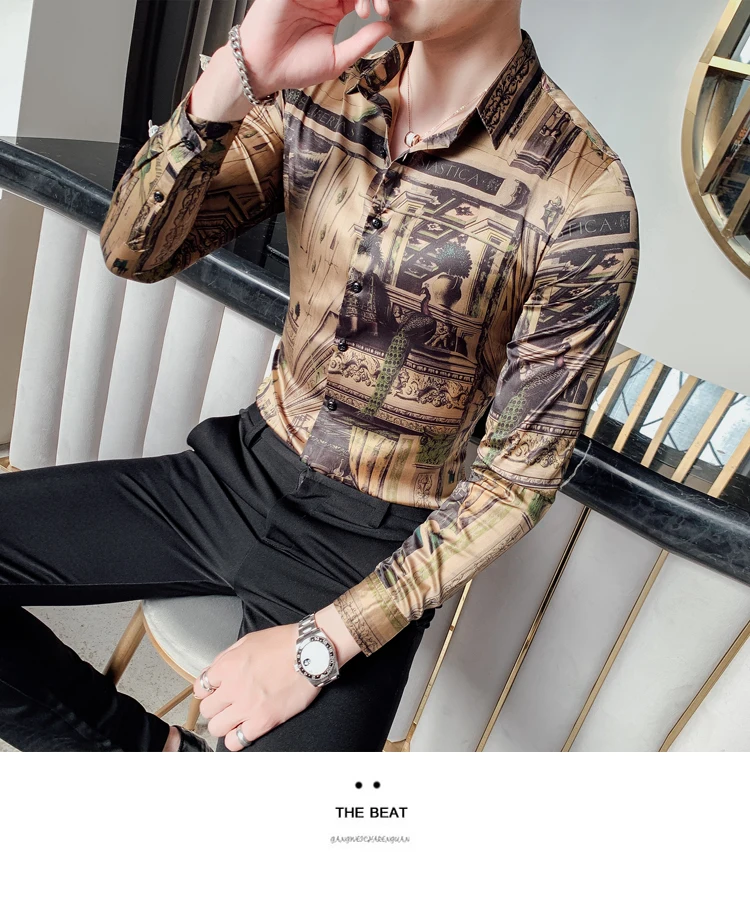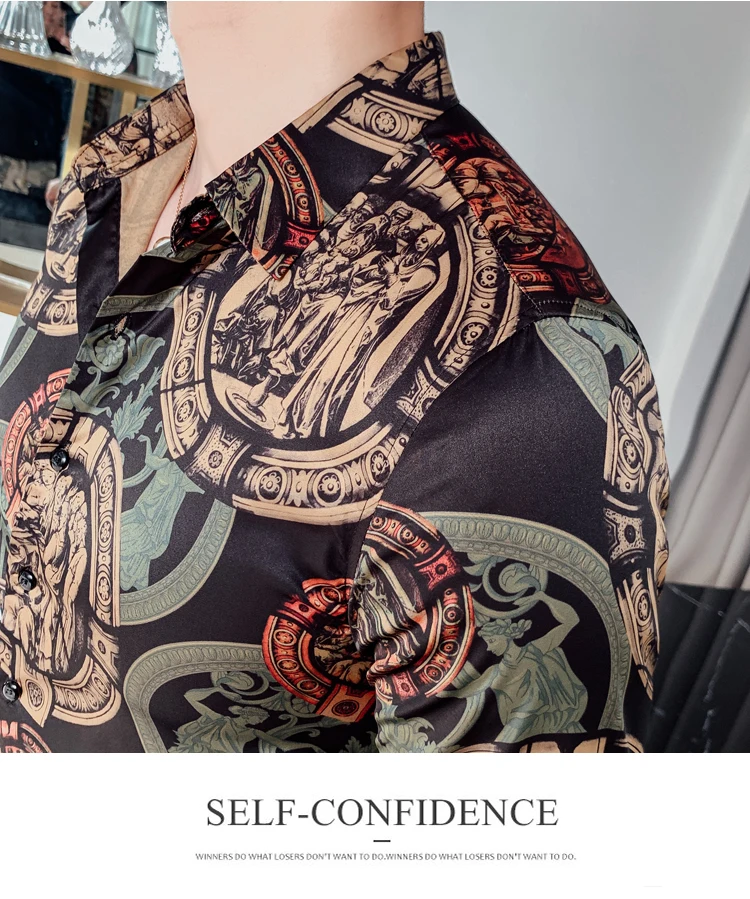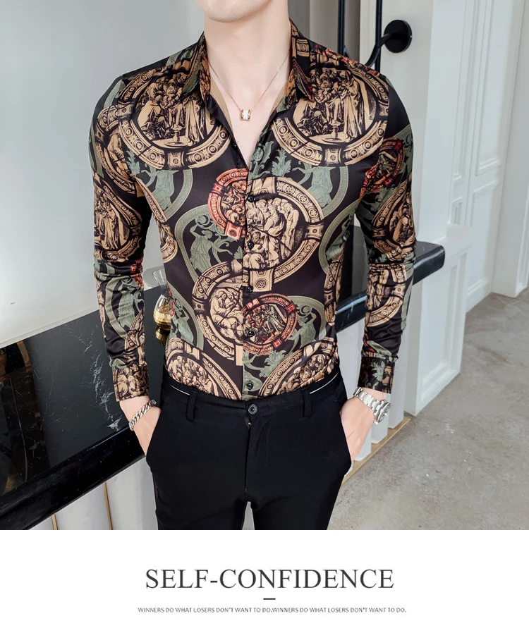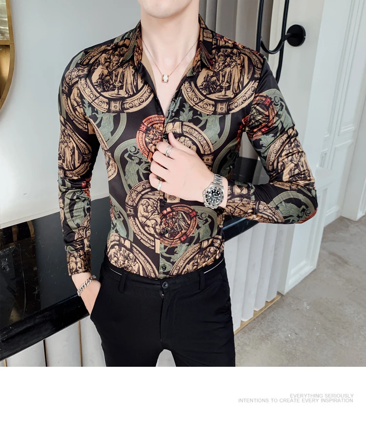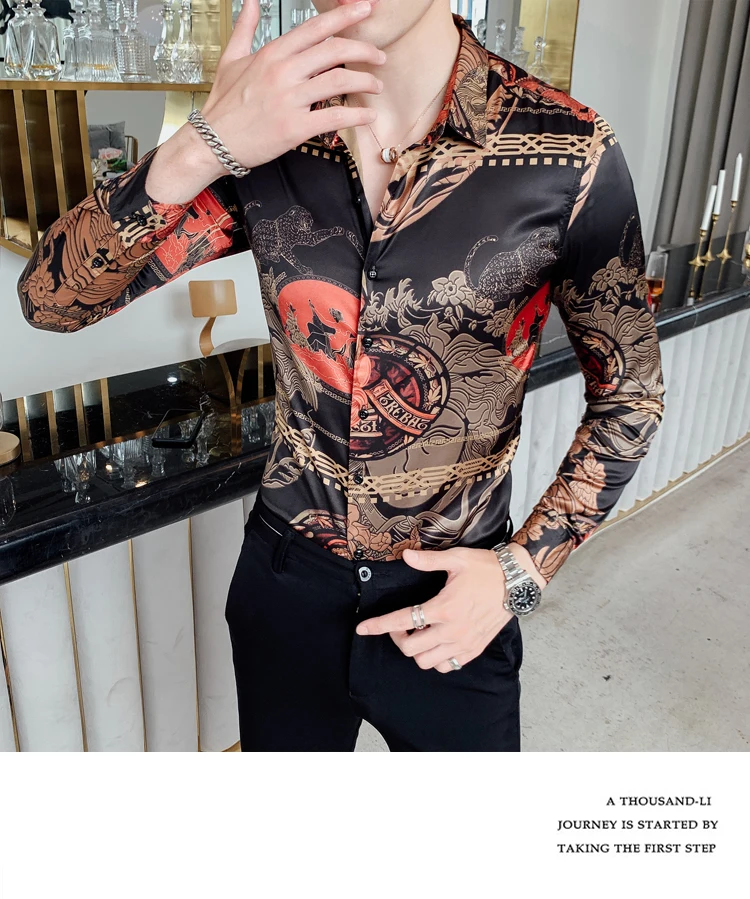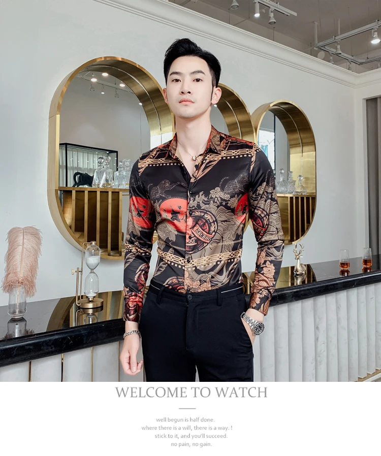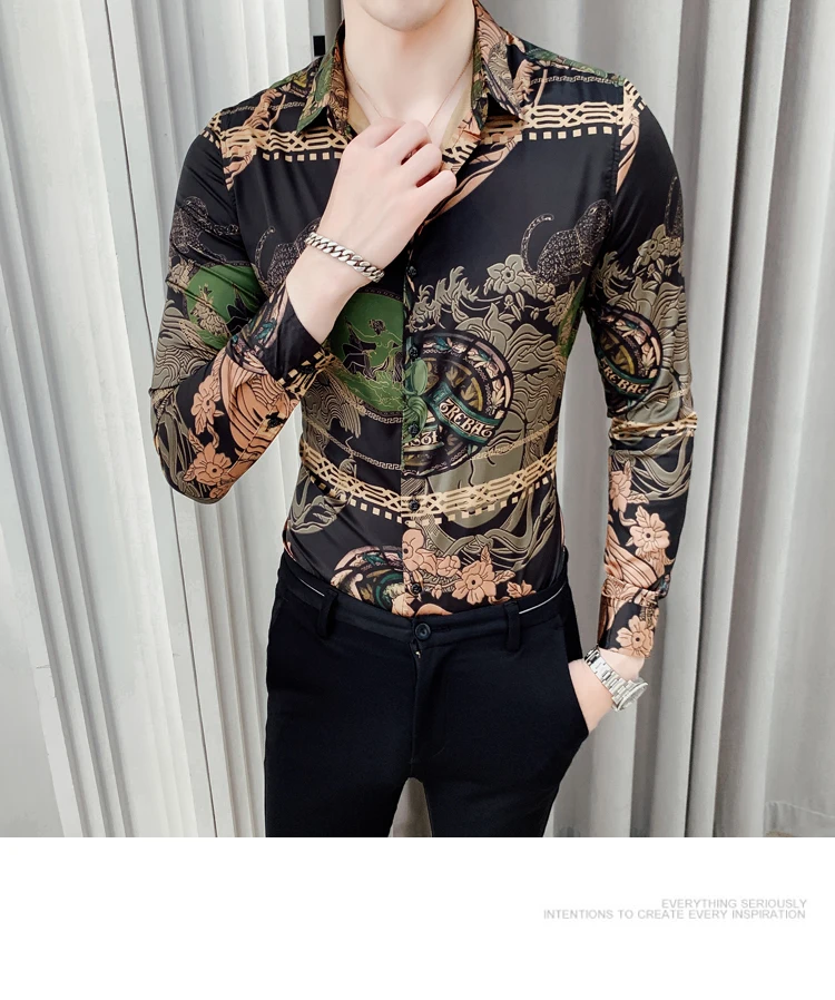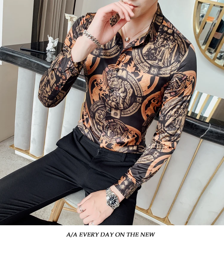 Роскошная рубашка с золотым принтом, мужские королевские рубашки в ...