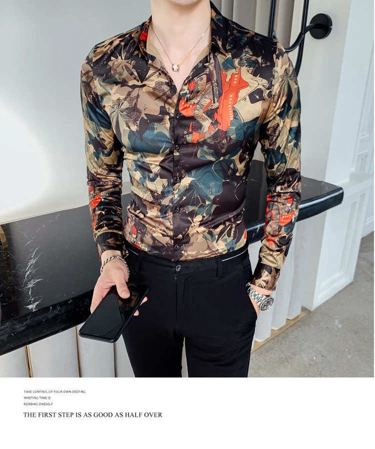 Мужская Повседневная рубашка, приталенная рубашка с цветочным принтом, для вечеринок, осень 2020, M-6XL