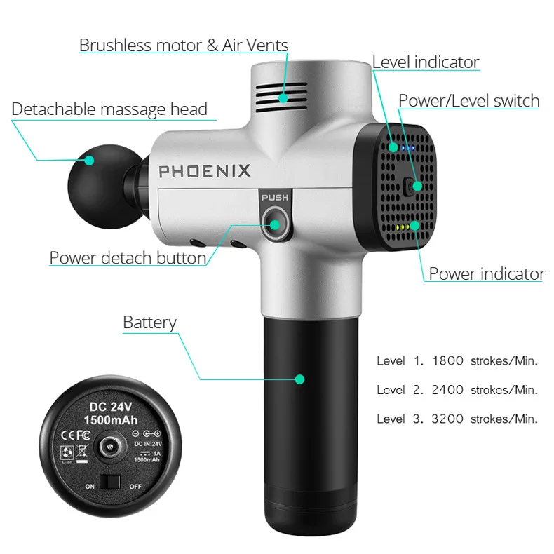 Массажный пистолет Phoenix A2 для расслабления мышц и глубоких тканей, массажер для динамической терапии, вибратор для формирования и облегчения боли в спине и ногах
