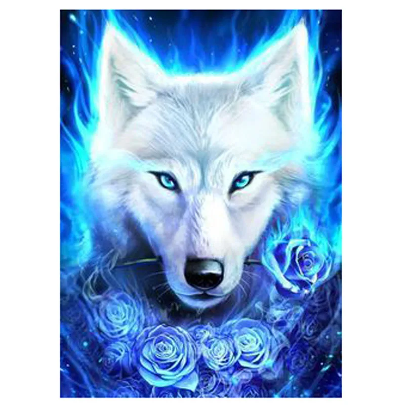 Алмазная вышивка альфа-волка сделай сам, животное альфа-волка, вышивка крестиком с голубым пламенем, волка, стразы, мозаичная живопись