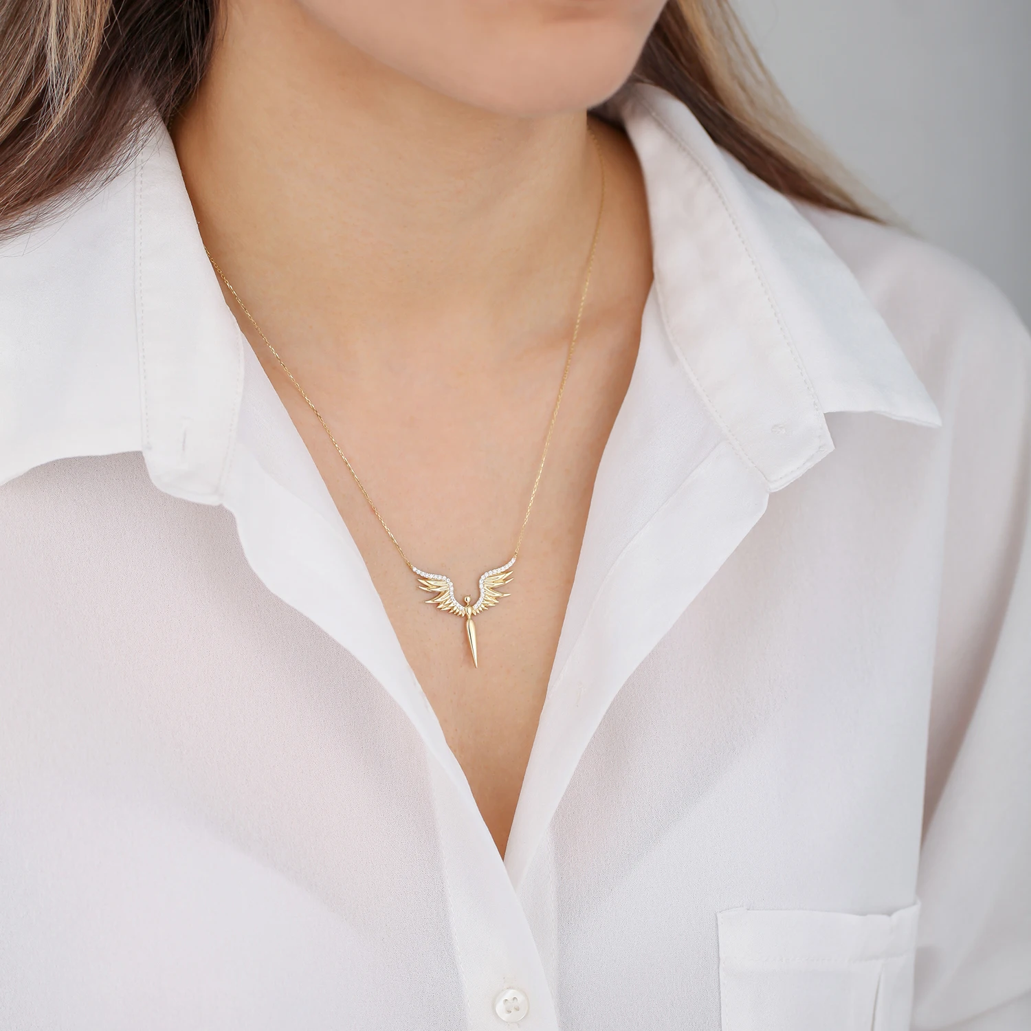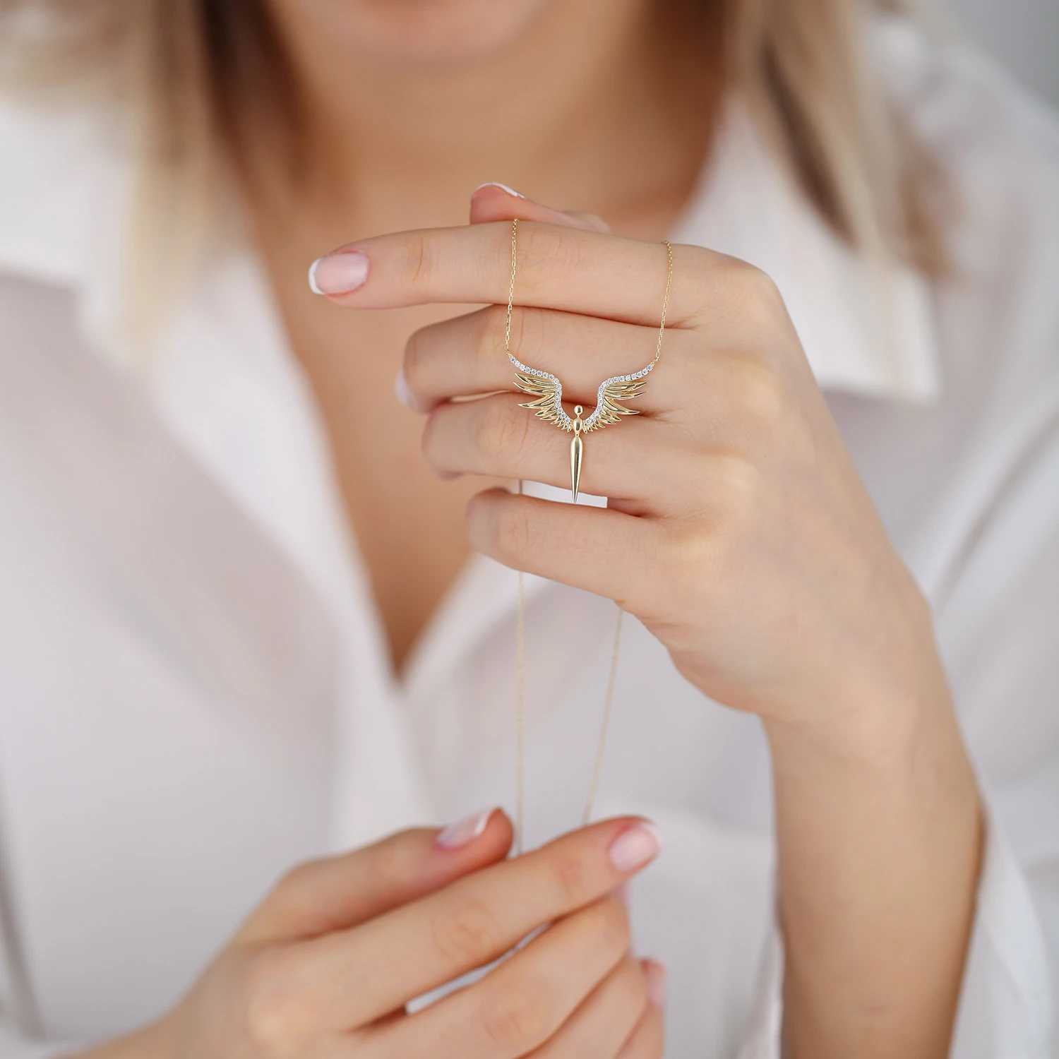 Ожерелье с ангелом из золота 14 к (585), кулон