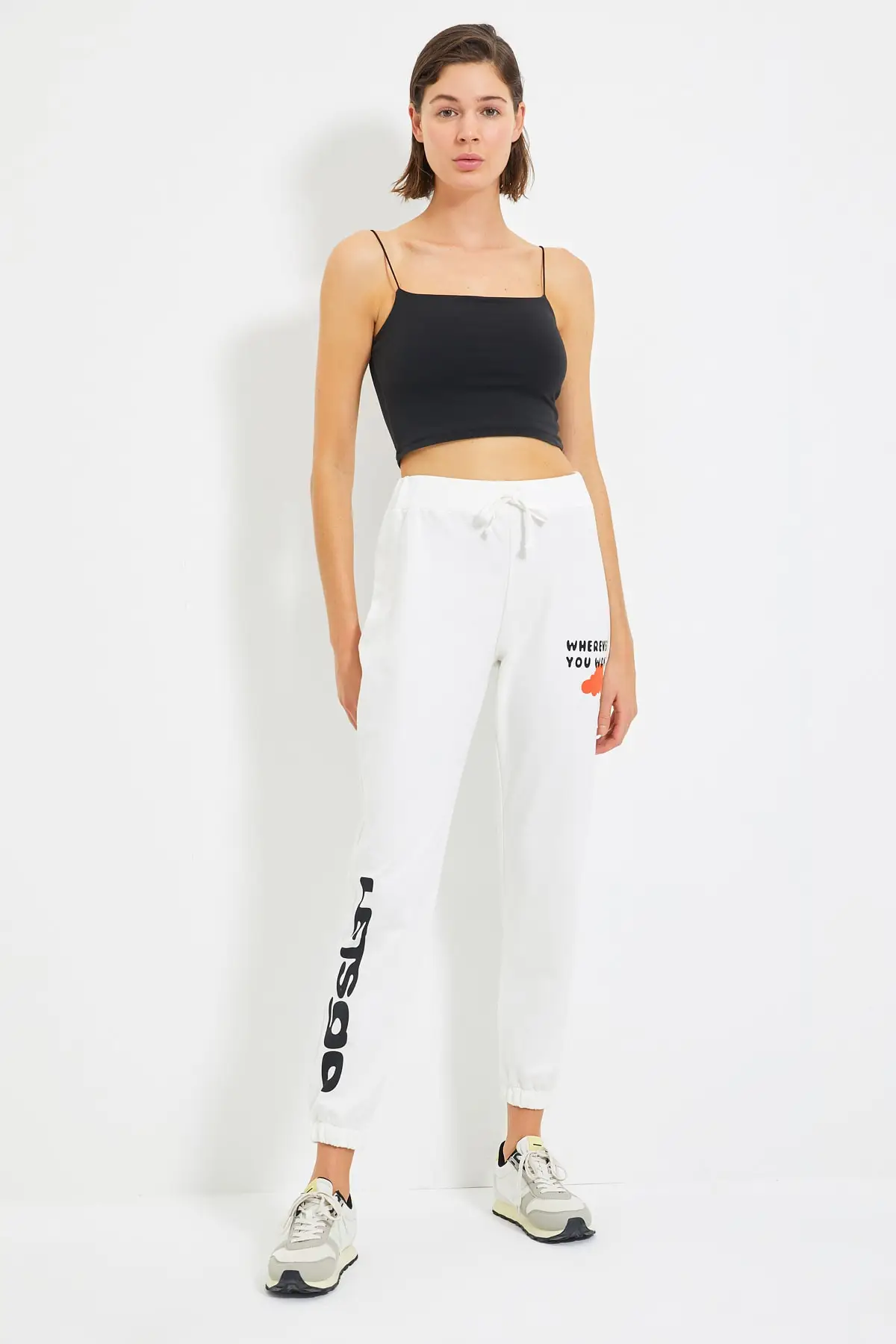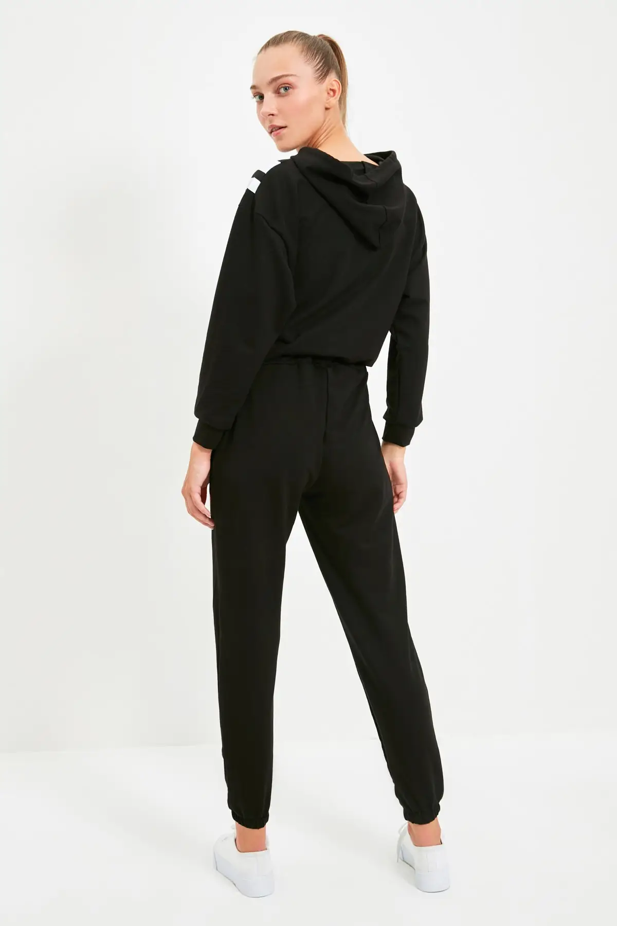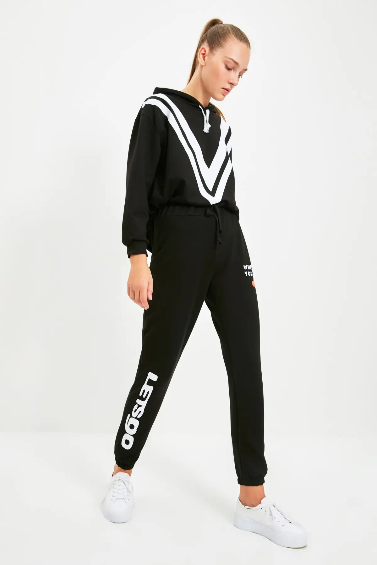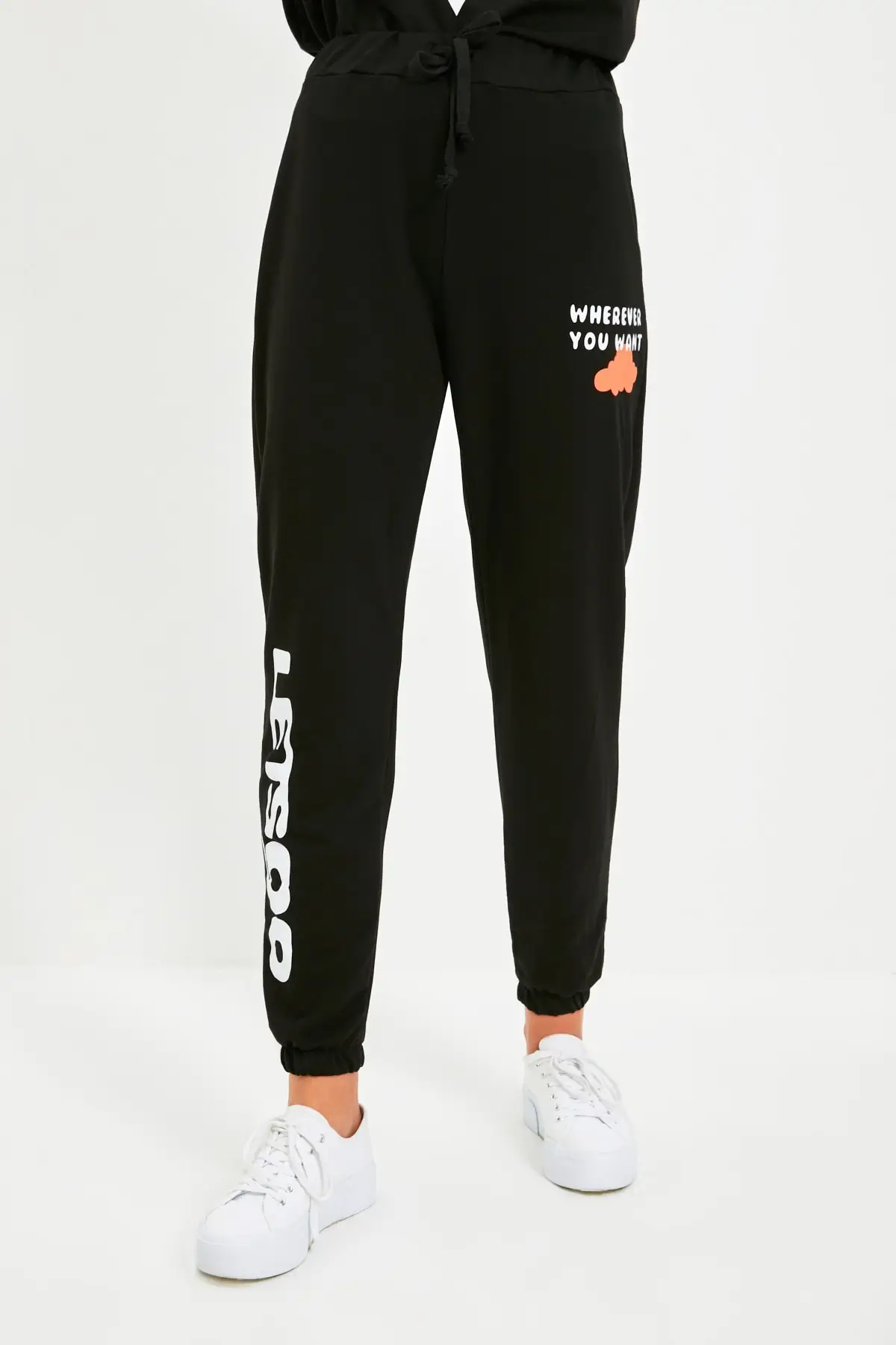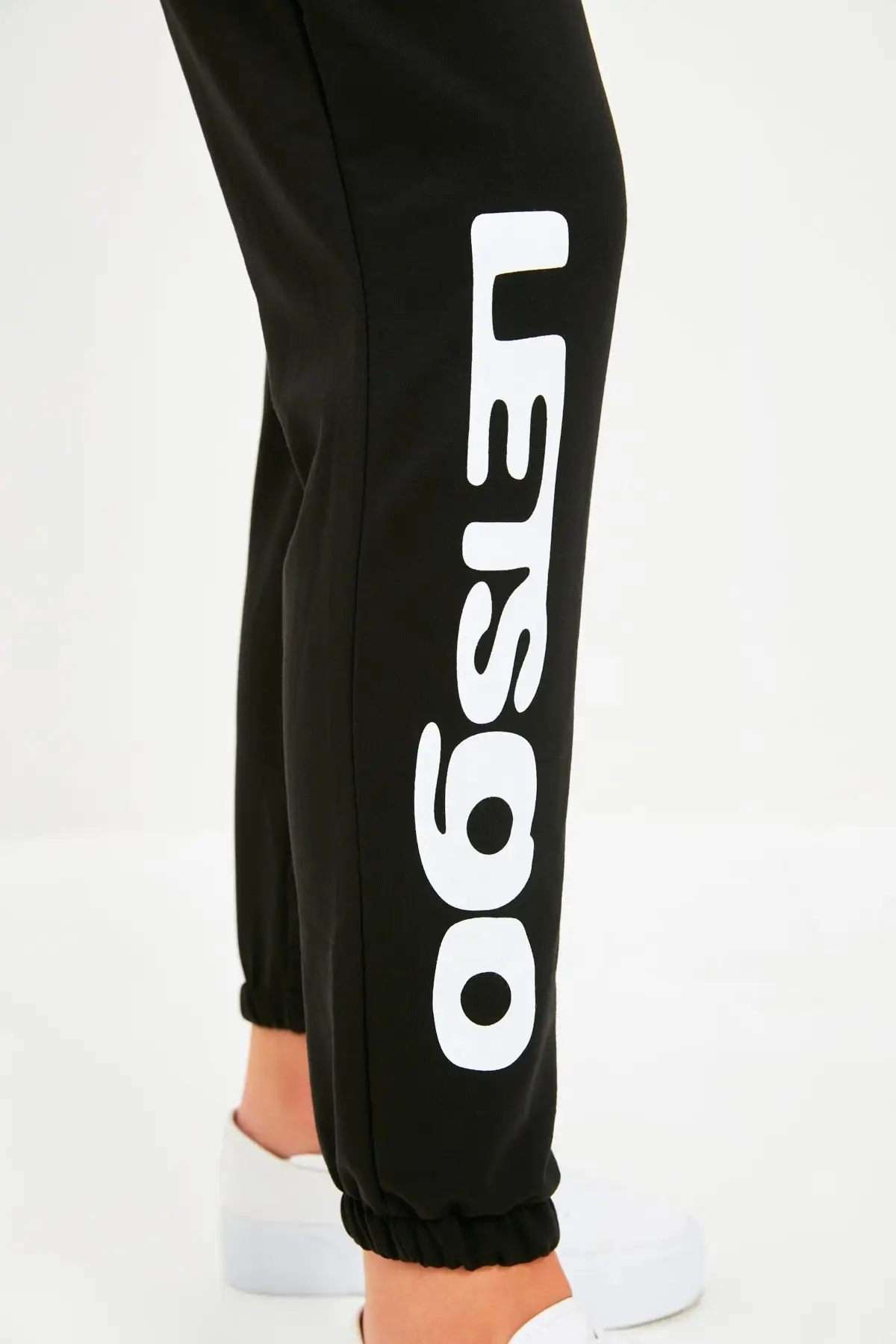 Черные свободные трикотажные спортивные штаны с принтом TWOAW21EA0122Размеры модели: Рост: 1,75, обхват груди: 80, обхват талии: 60, обхват бедер: 88Изделие на манекене размера S/36.65% хлопок 30% полиэстер 5% эластан, трикотажная тканьНаши продукты будут отправлены с этикеткой TRENDYOL.