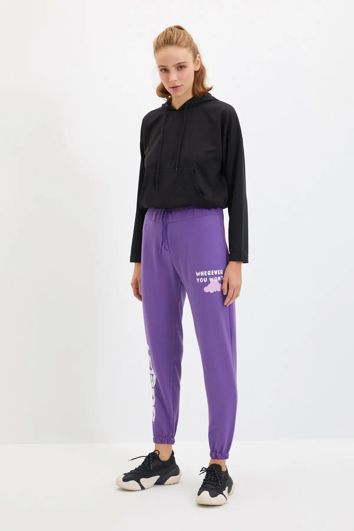 Фиолетовые свободные спортивные брюки для бега с принтом TWOAW21EA0122Размеры модели: Рост: 1,78, обхват груди: 85, обхват талии: 60, обхват бедер: 90Изделие на манекене размера S/36.65% хлопок 30% полиэстер 5% эластан, трикотажная тканьНаши продукты будут отправлены с этикеткой TRENDYOL.