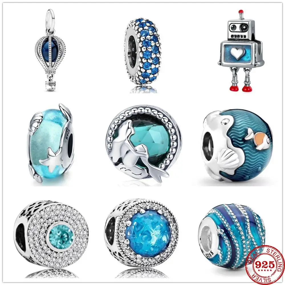 925 пробы серебряные металлические бусины синего цвета с океаническими волнами из Шарм из муранского стекла, подходят к оригинальному 3 мм Пан талисманы Серебро 925 браслет из натуральной подарки icon star icon star icon star icon star icon star