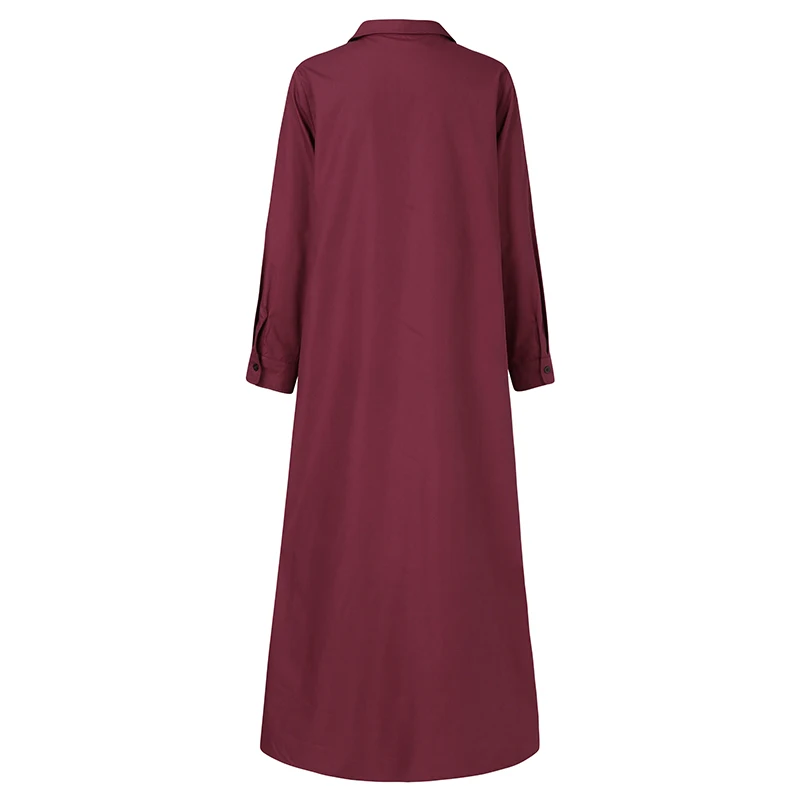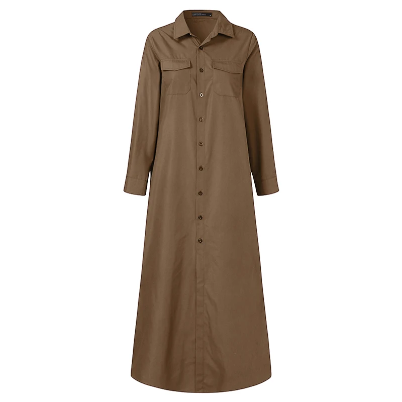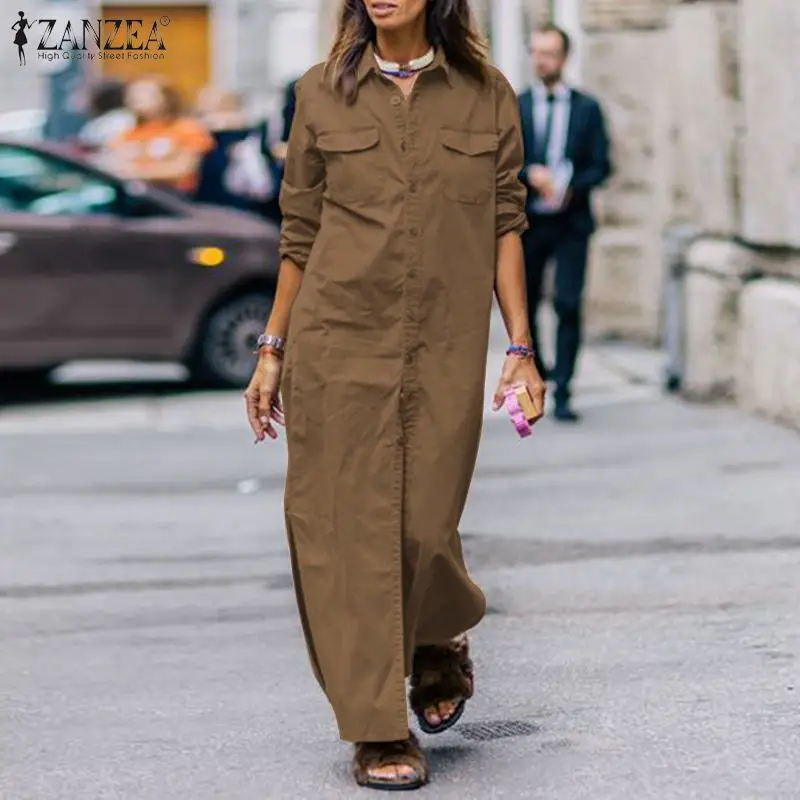 Женский Осенний сарафан ZANZEA 2022, модное однотонное платье-рубашка, Повседневное платье макси с разрезом, женское платье на пуговицах с лацканами