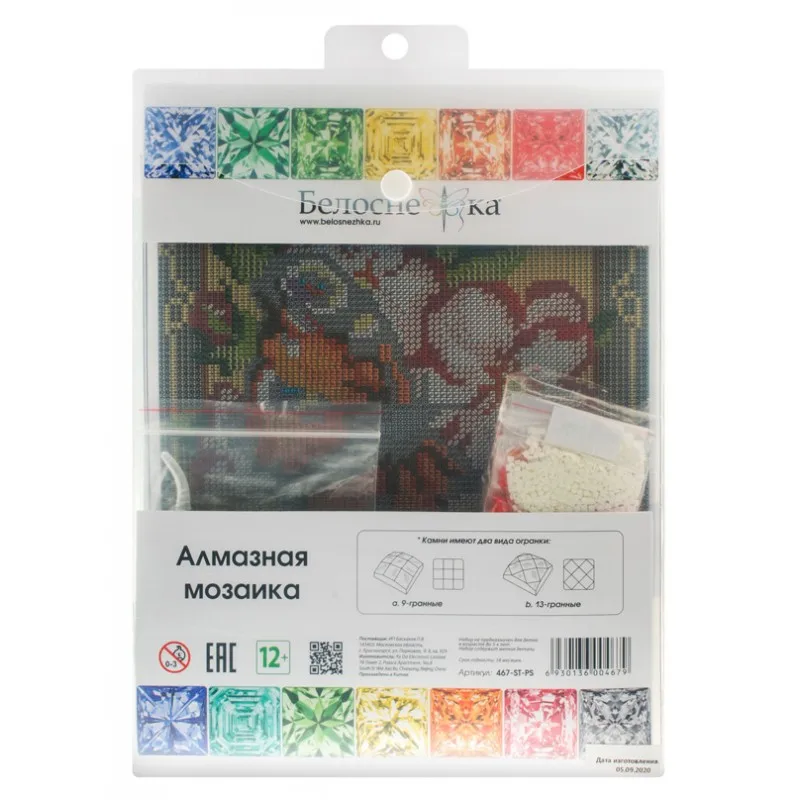 Набор для творчества алмазная мозаика: Павлиний глаз Набор из серии Алмазная мозаика от торговой марки «Белоснежка» наполнит ваши свободные часы увлекательным занятием. Воссоздайте прекрасную картину с изображением изящной бабочки на нежно-розовых цветах. В комплект входят квадратные ограненные акриловые камни, которые расфасованы по цветам, на пакетах имеется наклейка с условным обозначением и номером. На холсте напечатана четкая цветная схема, поверх которой нанесен качественный клеевой слой, сверху клеевой слой защищает прозрачная пленка. Квадратная форма алмазных камней позволяет аккуратно заполнить картину и без единого пробела. Техника алмазной мозаики достаточно проста и увлекательна. Готовую работу можно смело ставить в раму и вешать на стену. В солнечный день алмазная мозаика вас прекрасно удивит своим блеском и переливанием. Комплектация: 1. Основа картины - холст с нанесенной схемой на подрамнике 2. Комплект квадратных камней с огранкой 2,5*2,5 мм. 3. Пластмассовый лоток с ячейками 4. Пинцет металлический 5. Дополнительный тюбик клея 6. Листовка-ключ к схеме Характеристики: Тип выкладки – 100% заполнение Форма камней - квадратные 2,5*2,5 мм, 9 и 13 граней Размер – 20*20 см. Серия - бабочки, цветы Количество цветов - 20 Упаковка – прозрачный пакет с кнопкой Торговая марка – Белоснежка Страна производства - Китай