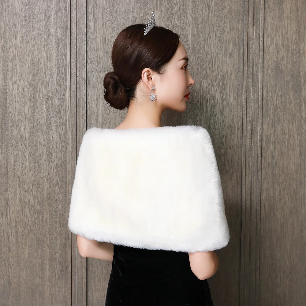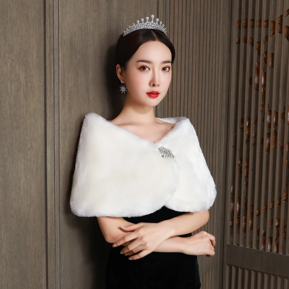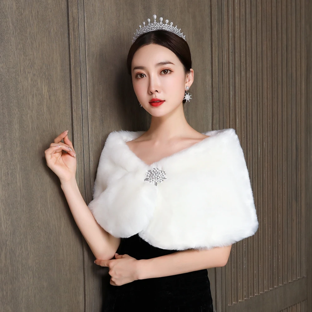 Вечерние шали из искусственного меха цвета слоновой кости, зимнее теплое свадебное болеро, свадебное пальто, свадебная брошь со стразами, Свадебные вечерние накидки