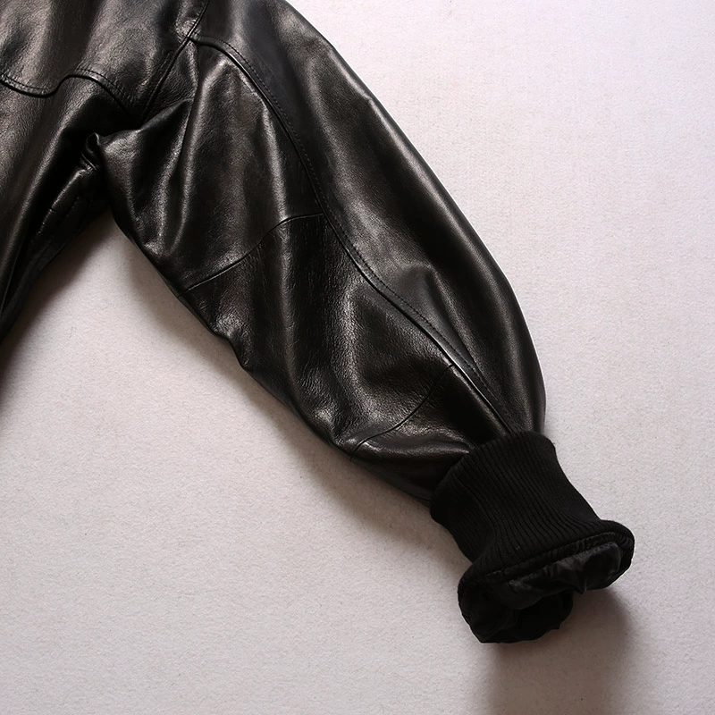 Куртка-бомбер мужская из натуральной овечьей кожи, в стиле милитари...