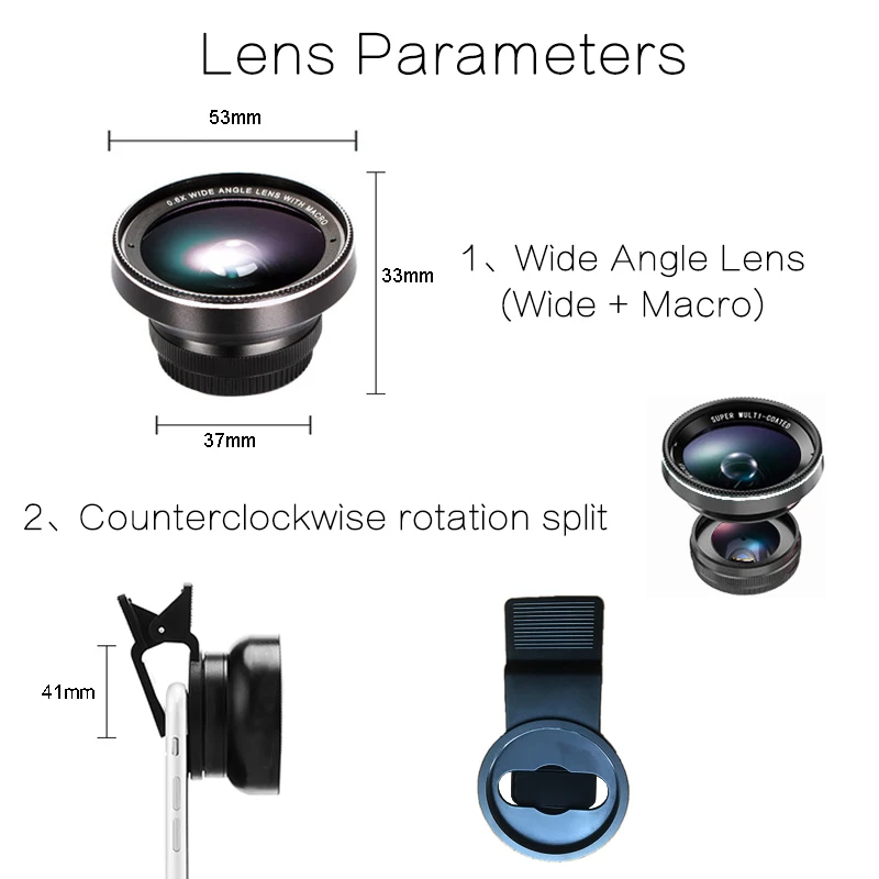 Комплект линз для телефона 0.6x Супер широкоугольный + 15x макрообъектив HD телеобъектив для iPhone11 9 8 Redmi 7 SamsungA50 HuaweiP30 P20 Mate