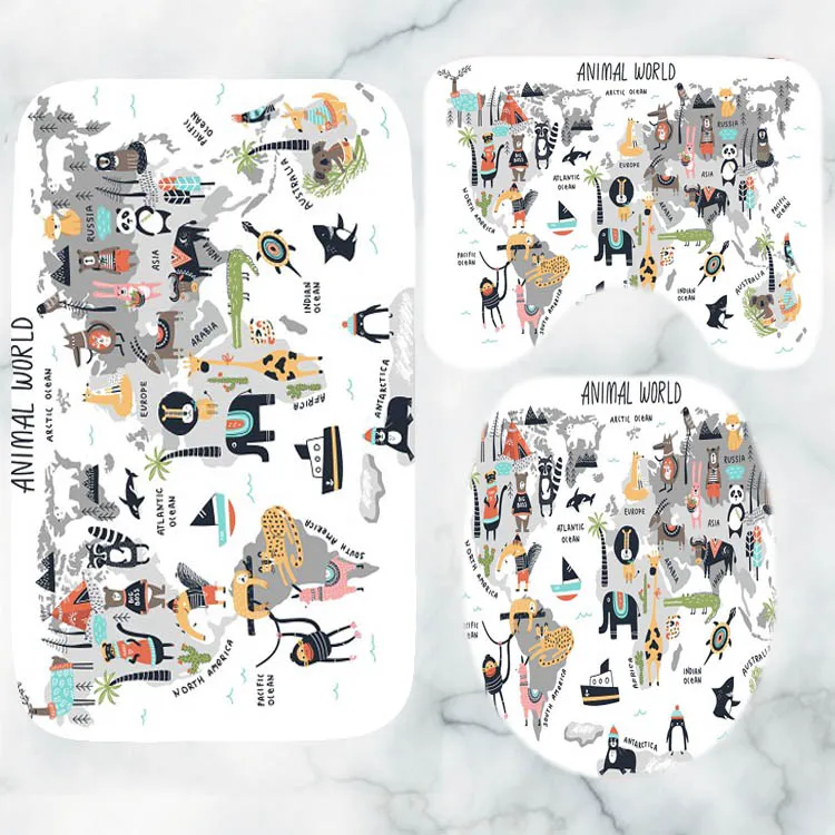 Скандинавские животные, Карта мира, занавески для душа и ванны, набор ковриков, Мультяшные животные, Карта мира, Детские занавески для ванной, коврики, домашний декор