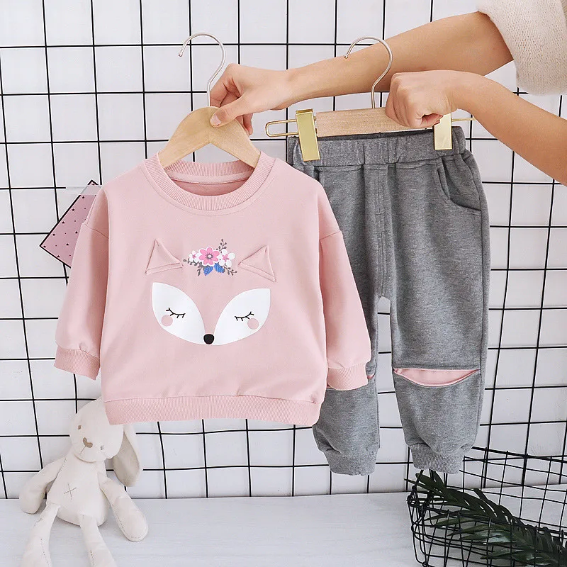 Костюм детский осенний из топа с круглым вырезом и милых брюк