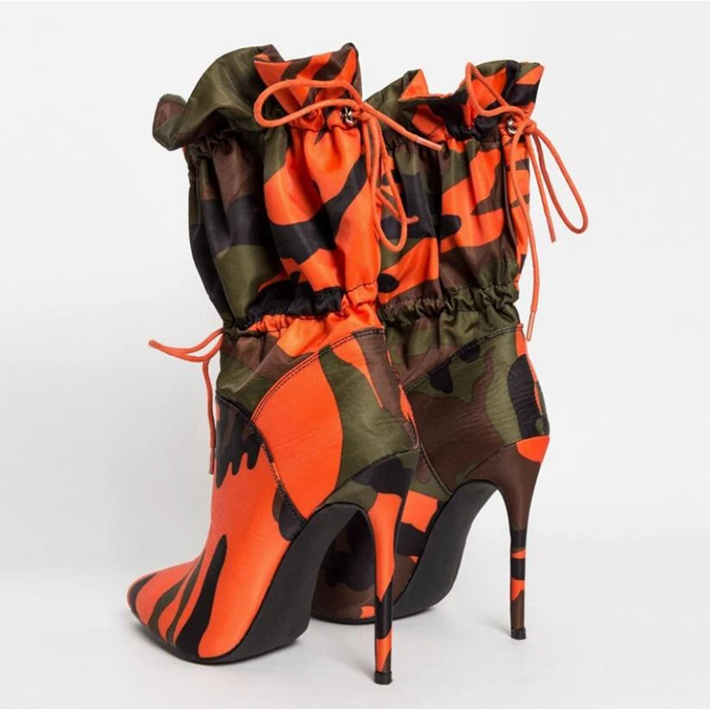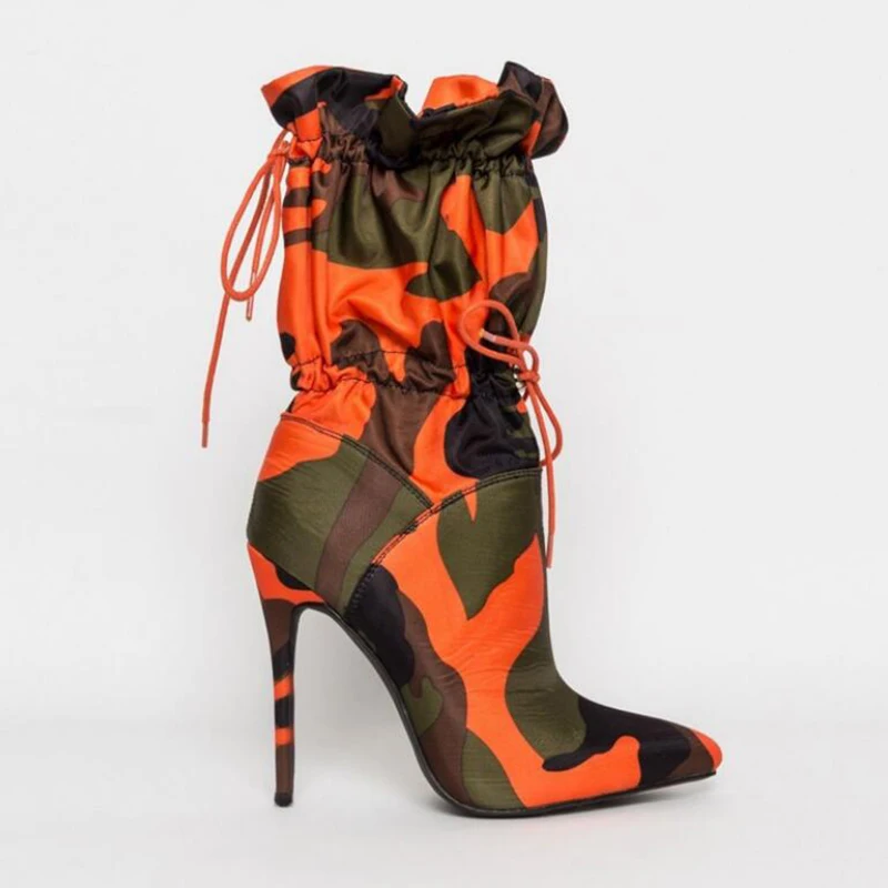 Модные женские ботинки с острым носком модные камуфляжные ботинки пикантные Брендовые женские ботинки на высоком каблуке популярные ботинки Вечерние