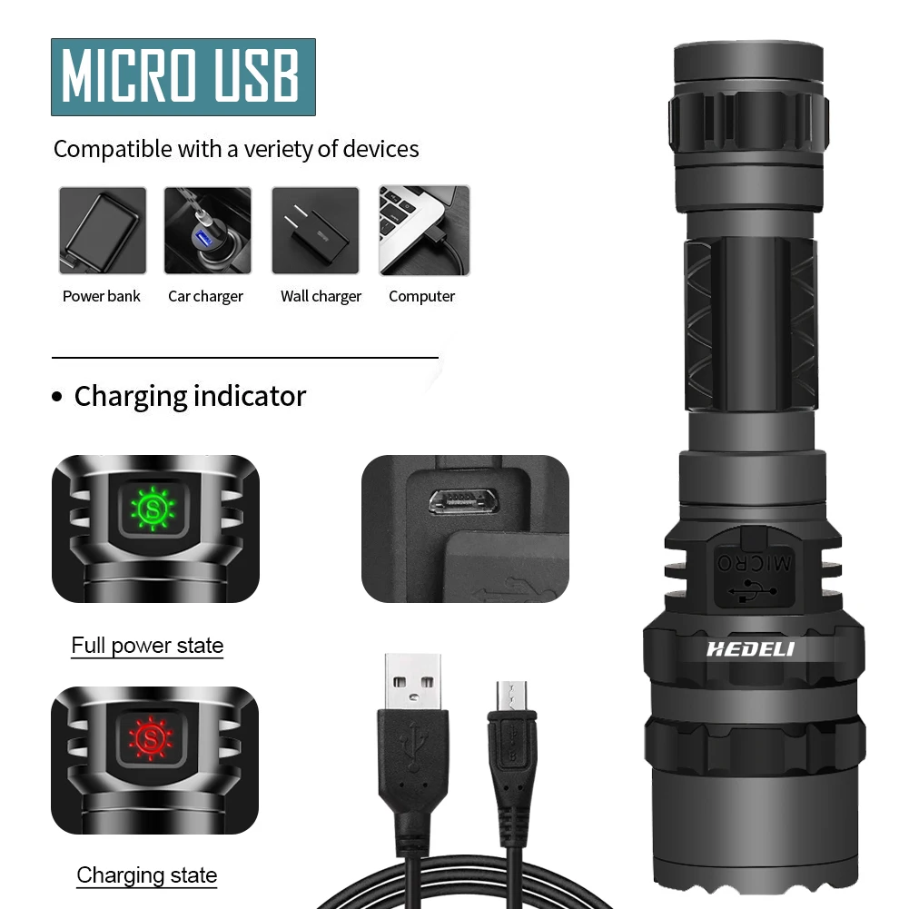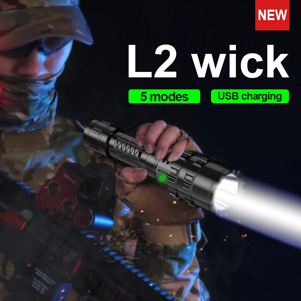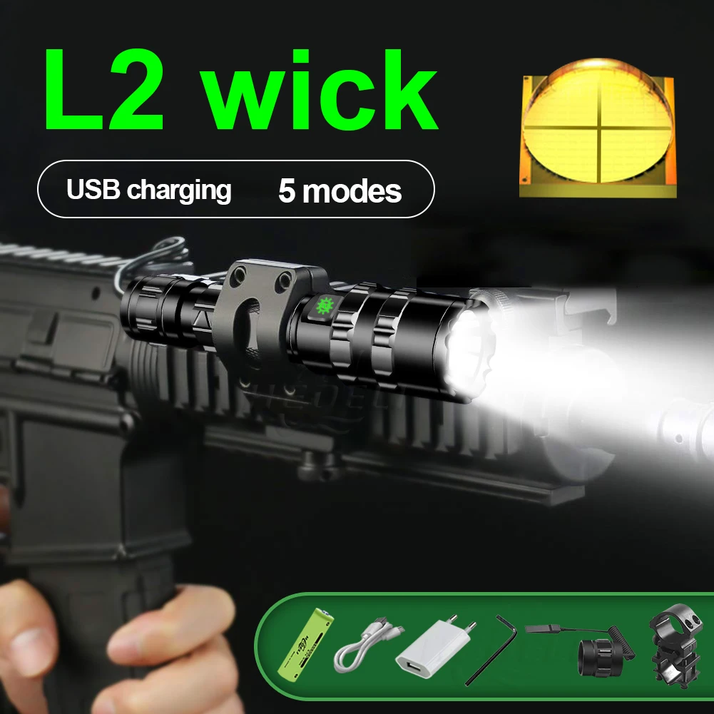 8000 люмен самый мощный светодиодный фонарик тактический фонарик Usb фонарик перезаряжаемый L2 охотничий ручной фонарь для стрельбы из пистолета