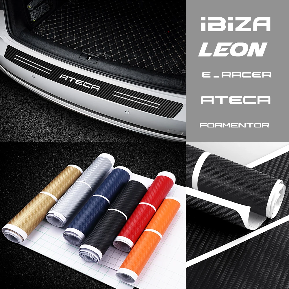 1PCS Car Rear Bumper Trunk Stickers Carbon Fiber Film Decor For SEAT Ibiza Leon Cupra e-Racer Ateca Formentor FR FR Racing