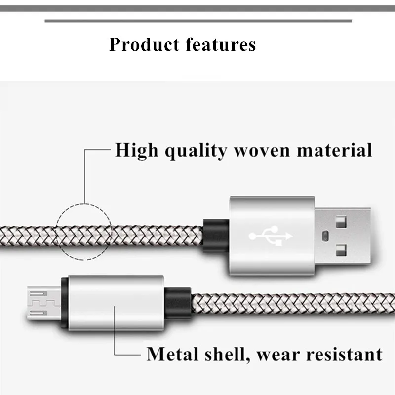 Короткий 2 м нейлоновый металлический разъем Micro usb шнуры для бы...