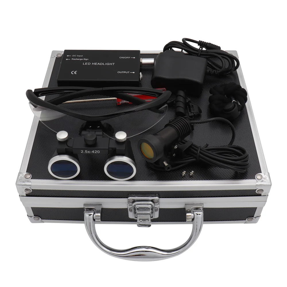 Лупа стоматологическая, 2,5x3,5x, зубная Лупа в наборе, с фильтром 5 Вт, металлическая коробка