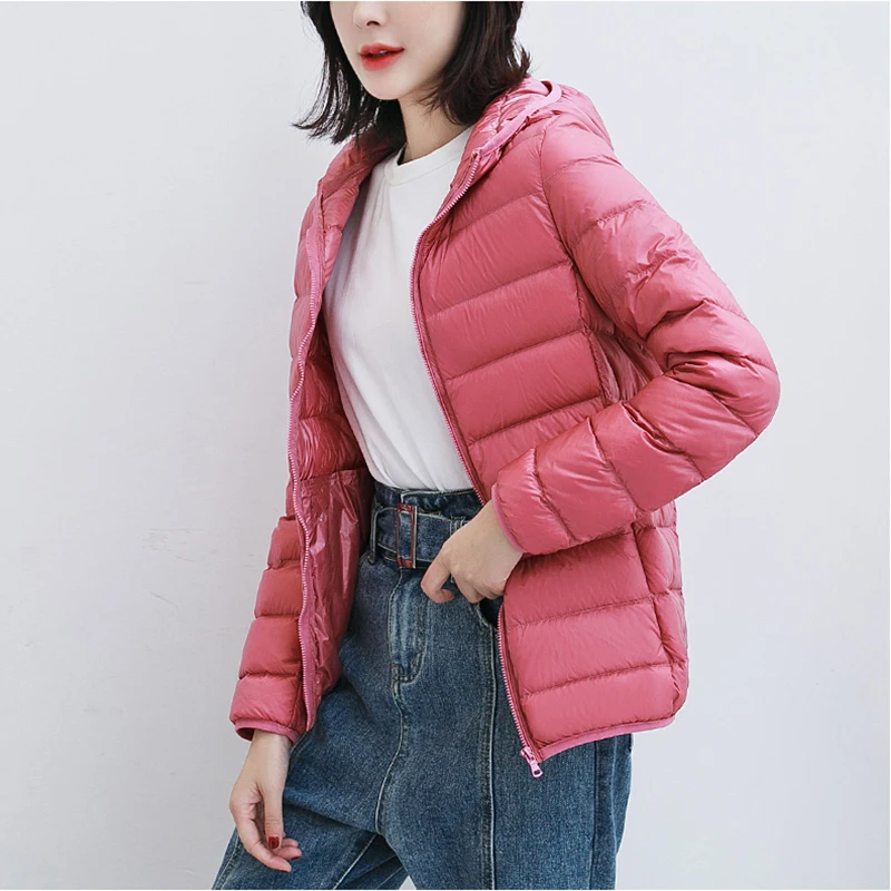 Куртка женская на 90% белом утином пуху, осенняя, ульсветильник Кая, приталенная, однотонная, с длинным рукавом, парка с капюшоном