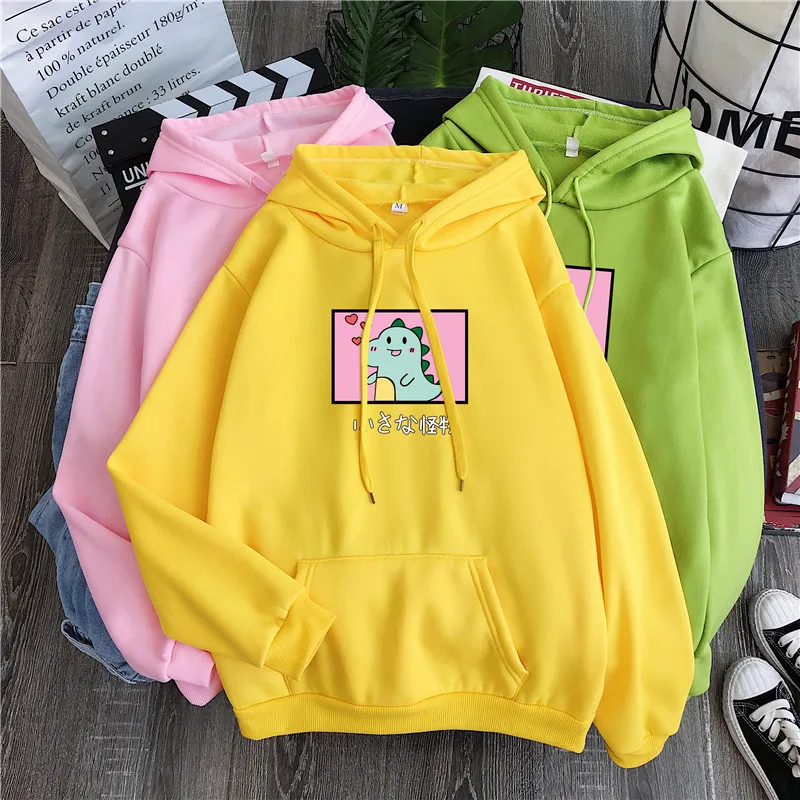 Корейский свитшот с капюшоном, милые толстовки с динозавром, женские топы, толстовка большого размера с длинным рукавом