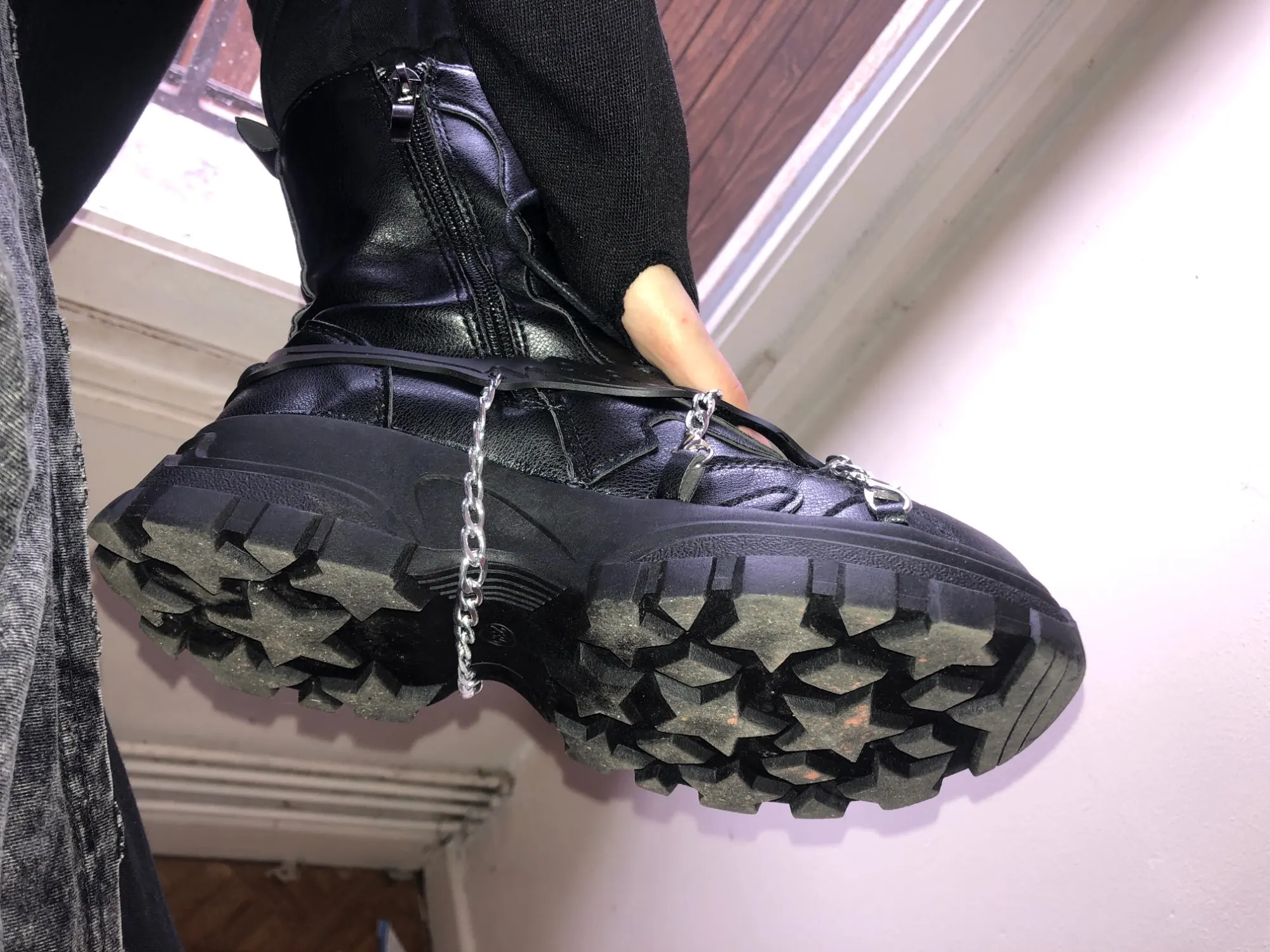 заказ доставлялся чуть больше месяца из-за пандемии думаю. товаром вполне довольна. в первый же день носки отвалился маленький ремешок,за который цеплялась цепь. сами цепи слабые. бегать в них не стоит. но визуально красиво. внутри имеется лёгкое утепление. на зиму до -10 градусов на изи носится. на размер 37 можете брать чуть больше.