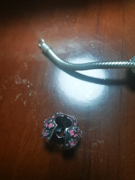 Заказала 11.11 в Москву пришло 8.12.шарм-стопор держится только на силиконовом колечке или на месте стопора на браслете иначе будет кататься по браслету. Внутри тёмный, что вызывает сомнение серебра, а так вроде серебро покупали похожий не потемнело и всё отлично, посмотрим как этот себя поведёт. Продавцу спасибо.