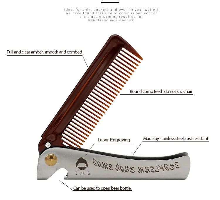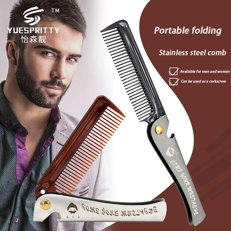 Для мужчин Складной Нержавеющая Сталь гребень масляная голова портативный борода расческа Schindler, wo Для мужчин с металлической ручкой карманный гребень, ежедневный уход Шарм инструмент для укладки волос