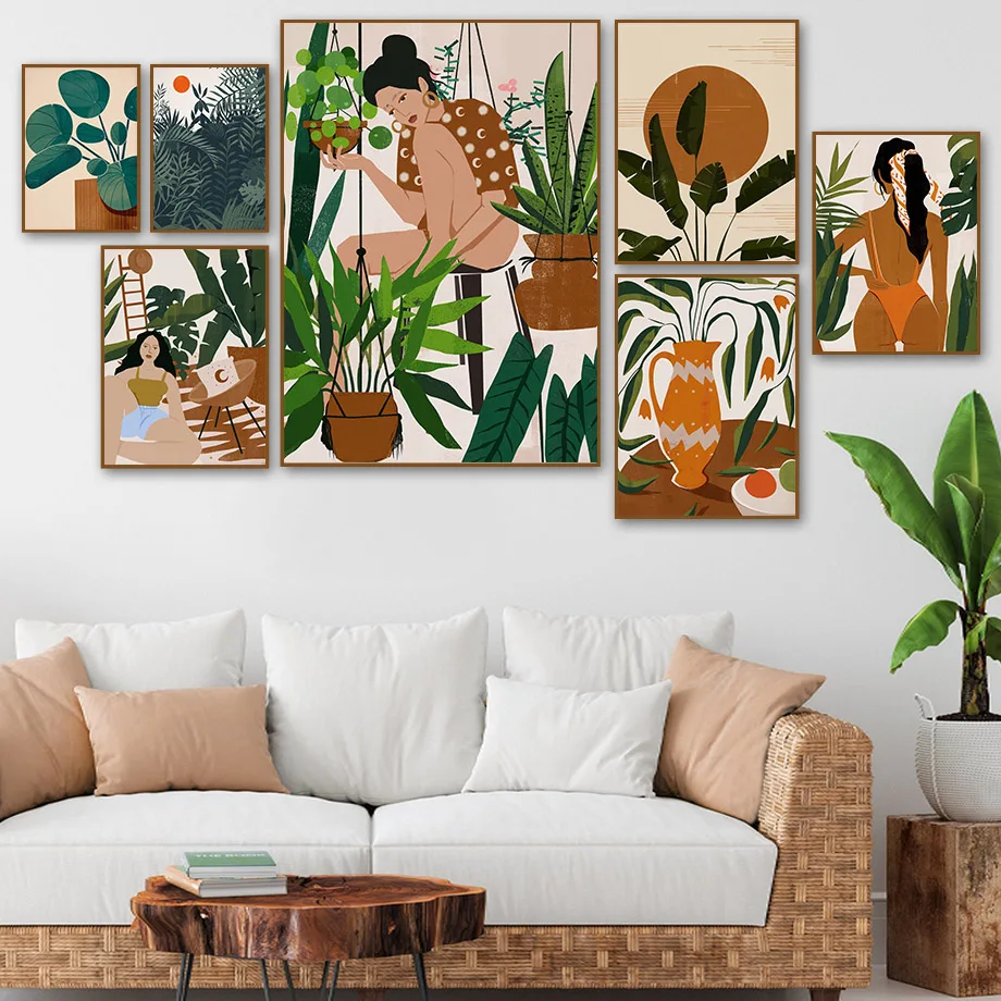 Тропический Бохо девушка автобус растение цветок абстрактная настен...