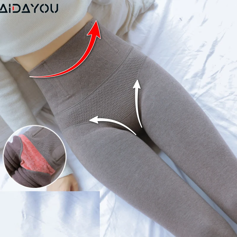 Леггинсы женские утепленные, с высокой талией, эластичные, из хлопка и шерсти, ouc3939b