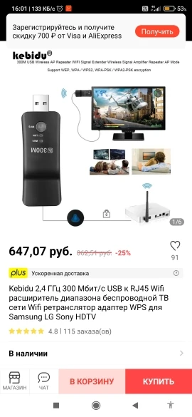 Очень быстро пришел в Москву. По сути это небольшой роутер м питанием по usb и двумя режимами работы - repiter, ap. Очень легко настраивать, можно использовать для соединения устройств где есть только rj45 в общий wifi дома. При этом устройство работает только на 2.4Гц . Супер устройство. Я подключил старый принтер к wifi.